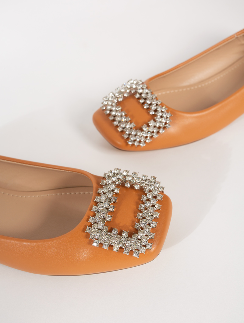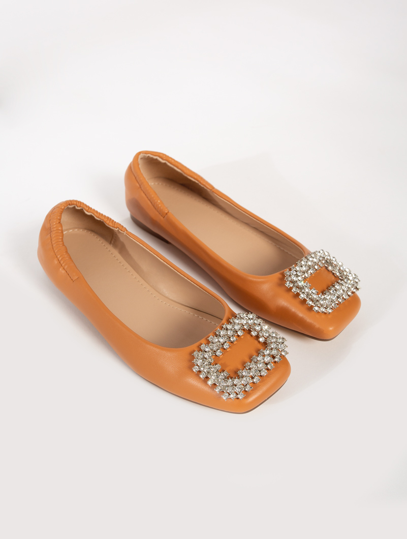 Ballerine plate à bout carré avec boucle décorative, dispose d'une semelle intérieure confort.