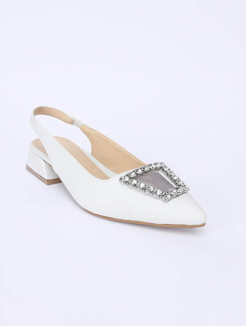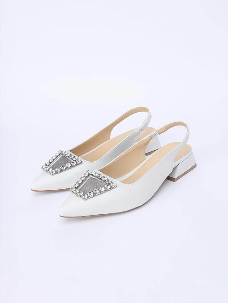 Ces charmants escarpins à petit talon sont le parfait mélange de sophistication et d'éclat. Ornés de boucles en strass, ils ajoutent une touche de glamour subtil à chaque pas, tandis que leur talon bas garantit un confort tout au long de la journée, pour que vous restiez élégante du matin au soir.