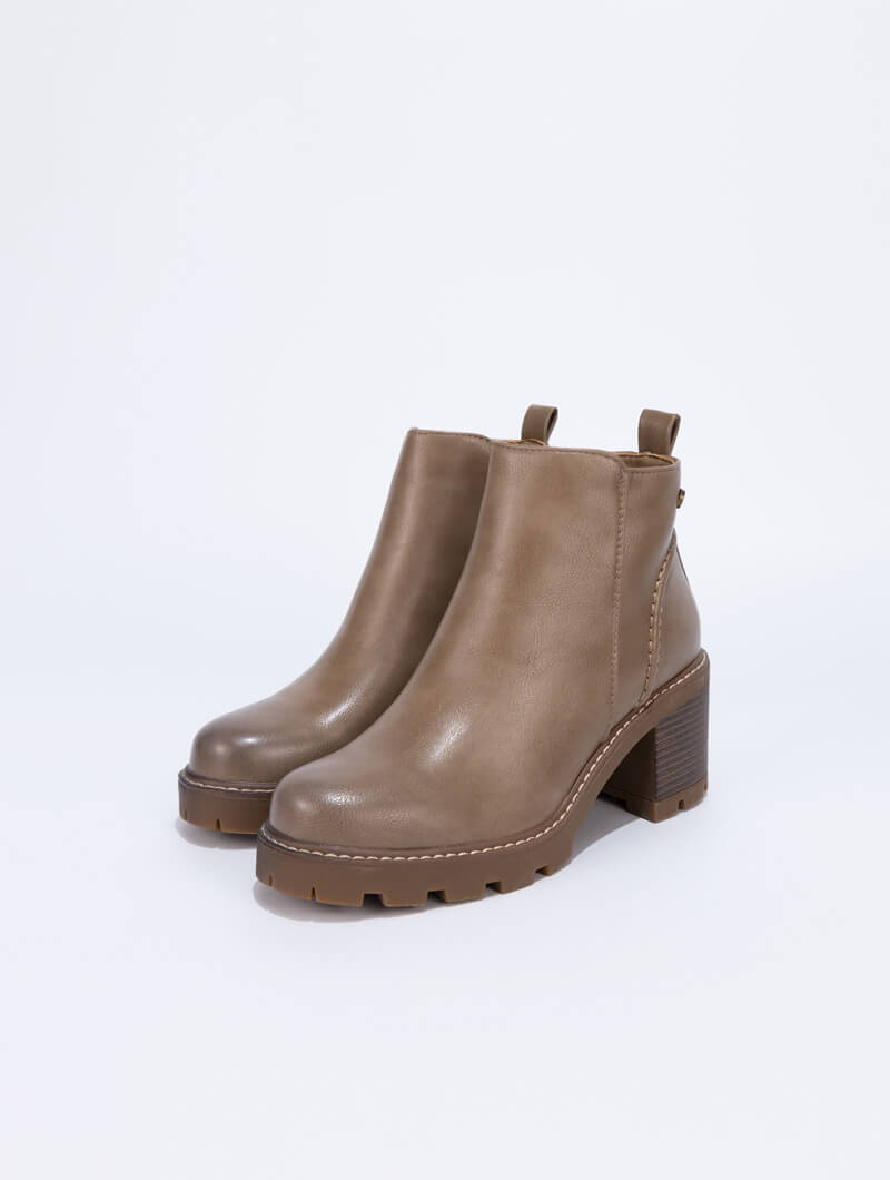 Ces bottines à demi-talon offrent une combinaison parfaite entre confort et sophistication. Conçues avec une finition soignée, elles sont idéales pour un look chic et moderne. Leur hauteur de talon intermédiaire vous assure une démarche stable tout en apportant une touche d’élégance à vos tenues. Parfaites pour les journées de travail ou les sorties en soirée.