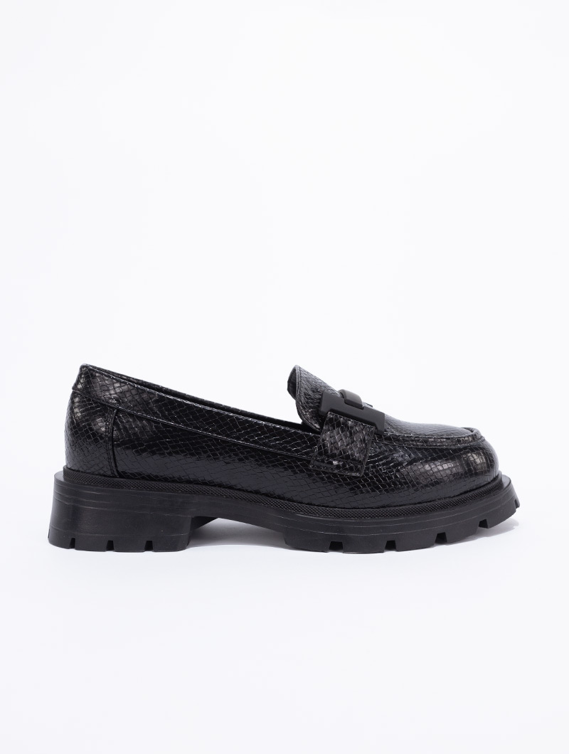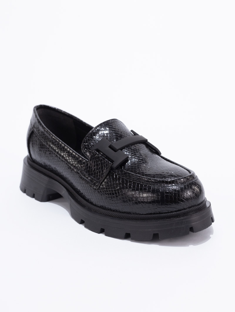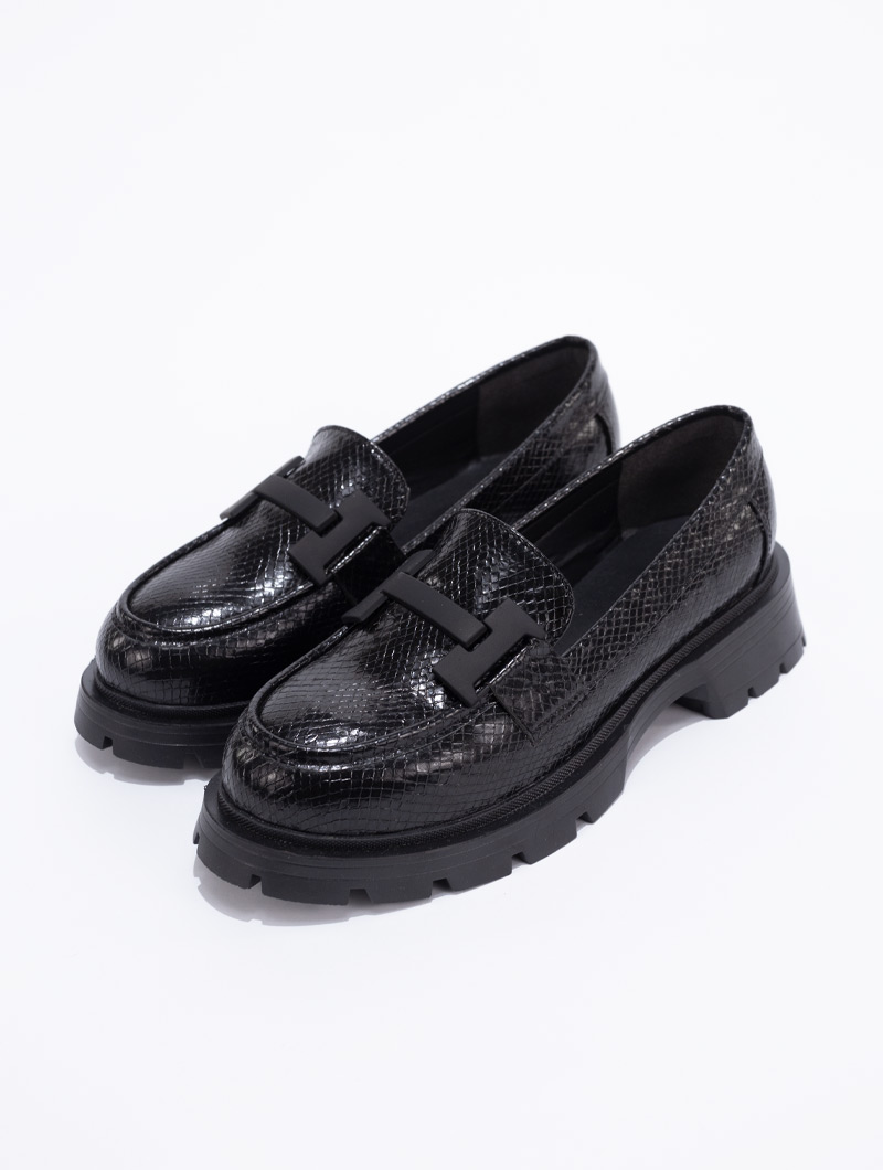 Un modèle basique et classique, disponible en vernis et en croco. Sa semelle légèrement épaisse lui confère une touche de caractère intemporelle.