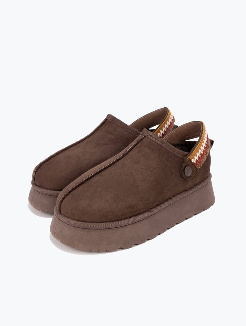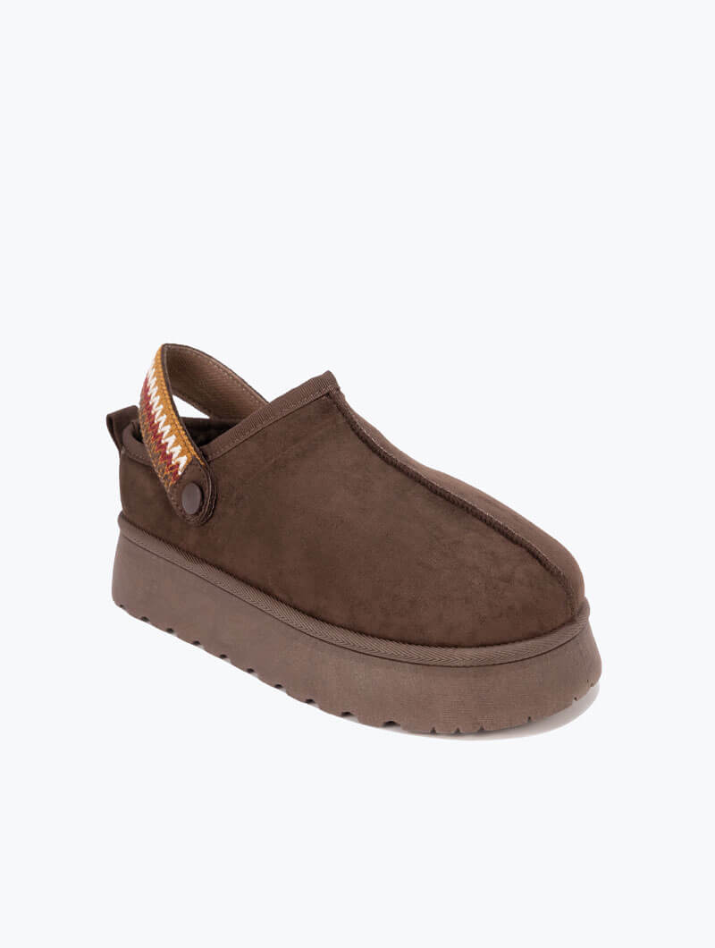 Ces sabots à plateforme allient confort et style avec leur texture douce et leur design moderne. Leur bride arrière ornée d’un motif coloré assure un maintien parfait tout en apportant une touche originale. Idéales pour cocooner à la maison avec une allure tendance. Hauteur de la semelle: 4.5 CM