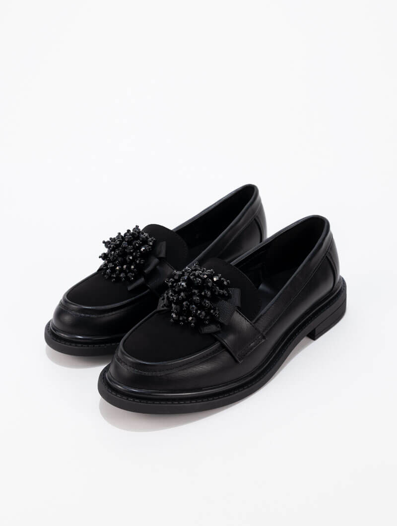 Ces derbies raffinés se distinguent par une boucle élégante ornée de cristaux scintillants. Parfaites pour ajouter une touche de glamour à vos tenues classiques. Hauteur de la semelle: 3 CM