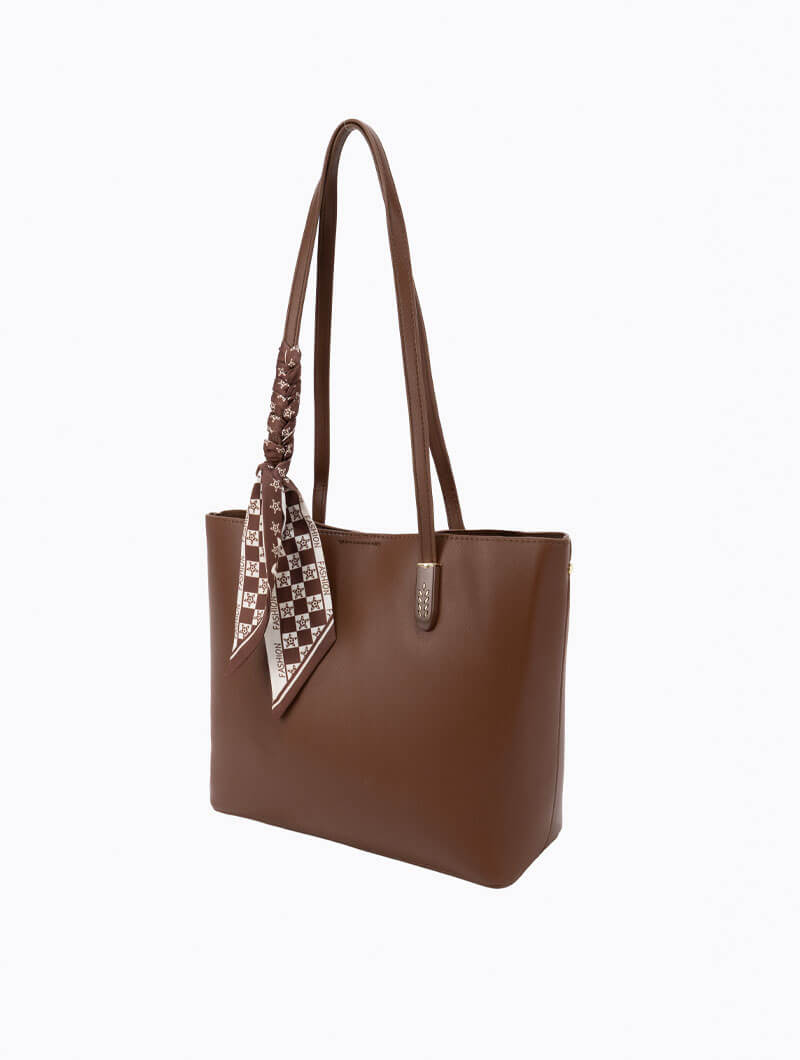 Élégant et moderne, ce sac à main se distingue par son foulard décoratif qui ajoute une touche de charme. Son format pratique et ses anses longues en font le compagnon idéal pour vos journées bien remplies.