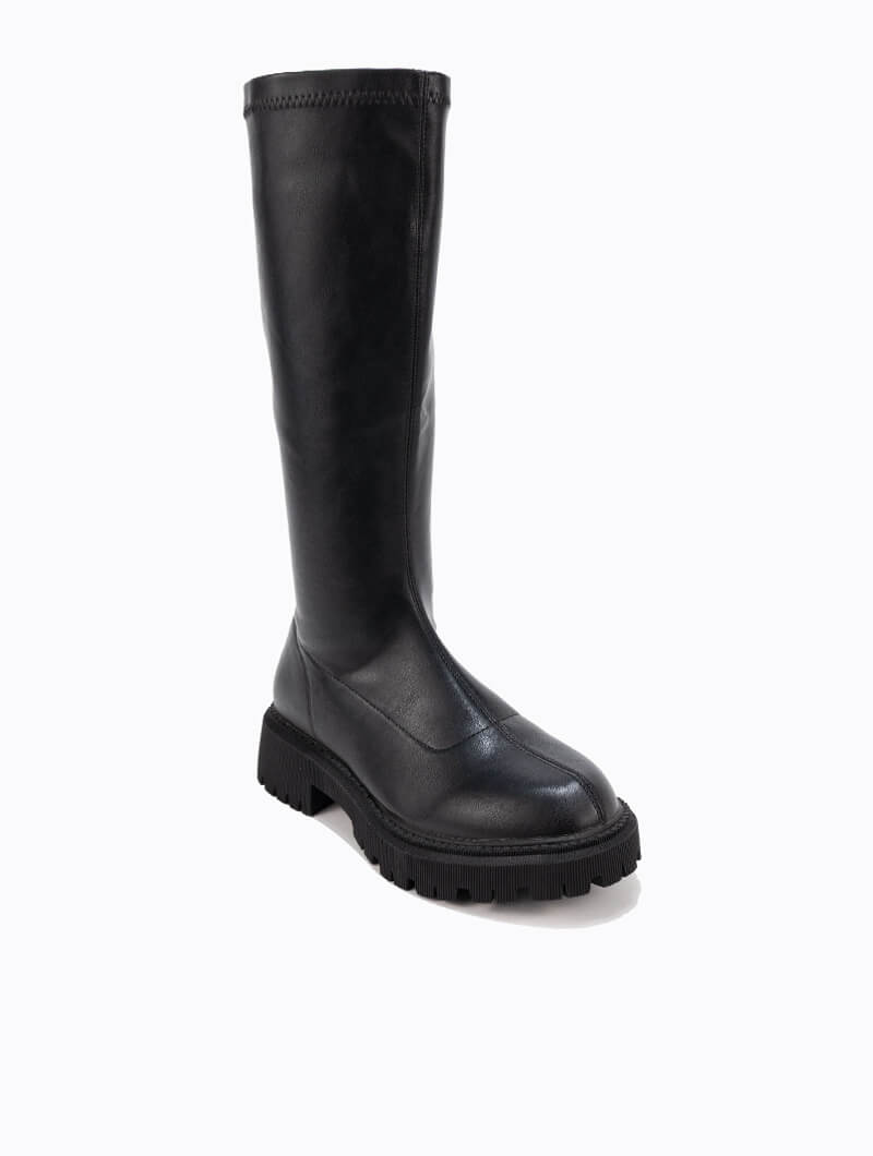 Alliant style moderne et confort, ces bottes montantes jusqu’au mollet sont dotées d’une semelle épaisse crantée pour une adhérence optimale. Faciles à enfiler grâce à leur fermeture zippée, elles offrent un maintien parfait et une allure tendance au quotidien. Idéales pour compléter un look urbain chic ou casual.
