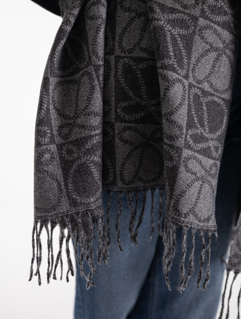 Enveloppez vous de douceur avec cette écharpe en laine aux motifs élégants et subtils. Sa texture moelleuse offre un confort irrésistible, tandis que son design raffiné apporte une touche chic à toutes vos tenues. Parfaite pour rester au chaud avec style lors des journées fraîches.