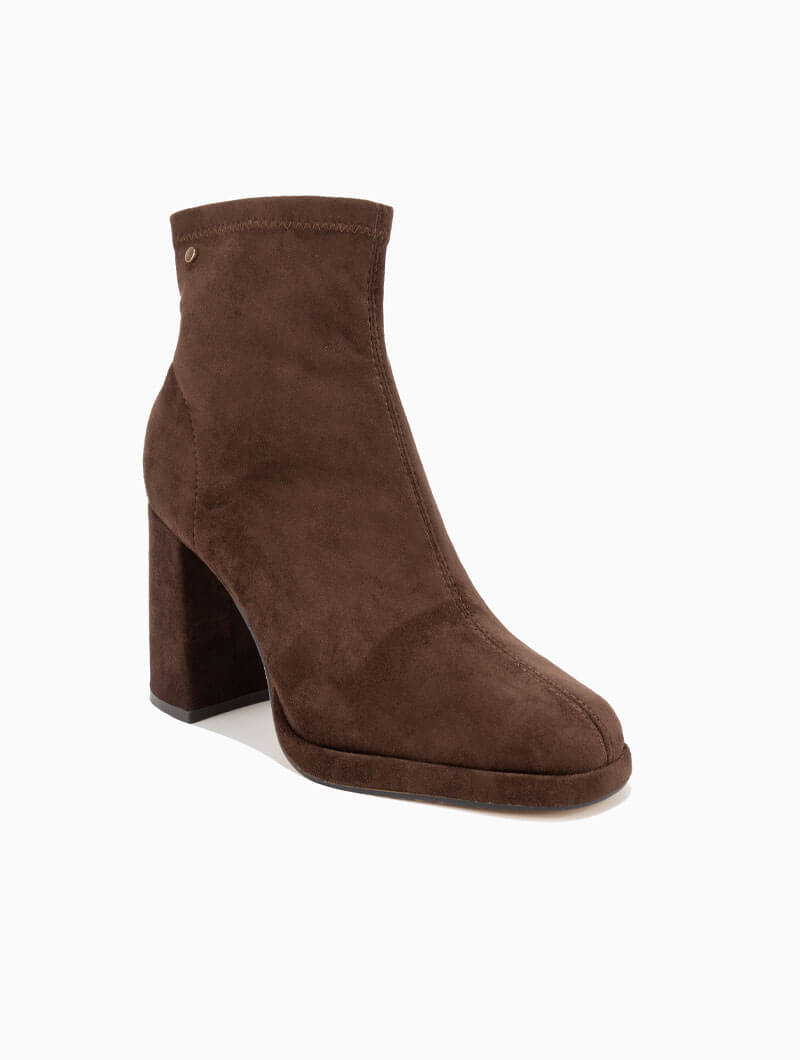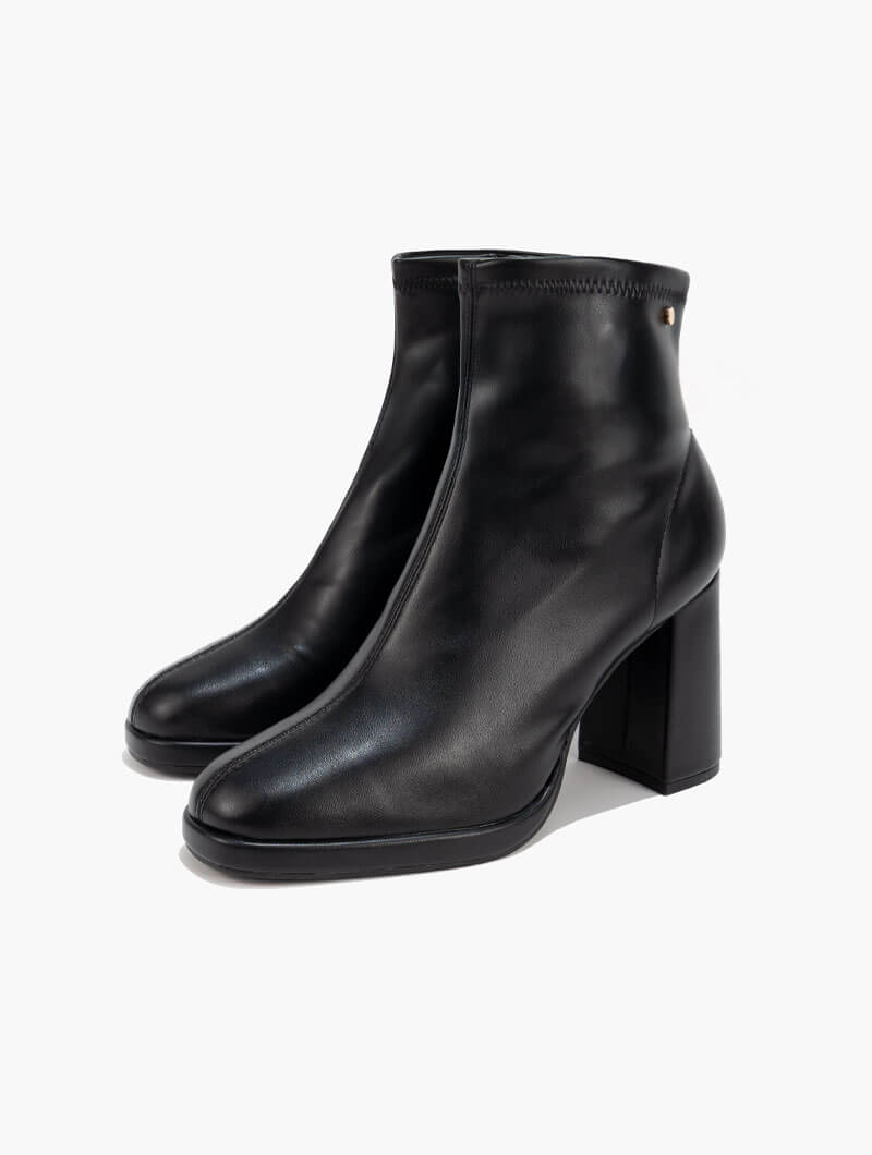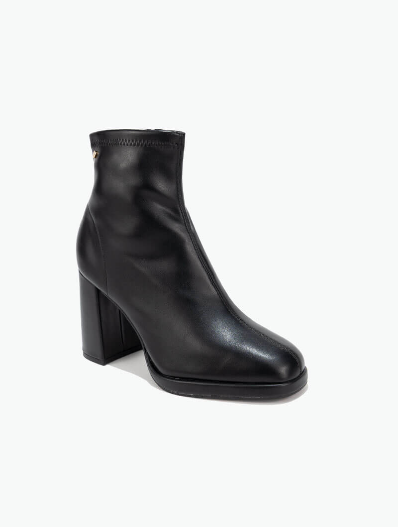 Bottines à talon qui apportent une allure chic et moderne. Leur coupe montante structure la silhouette, tandis que le talon met subtilement en valeur chaque pas.