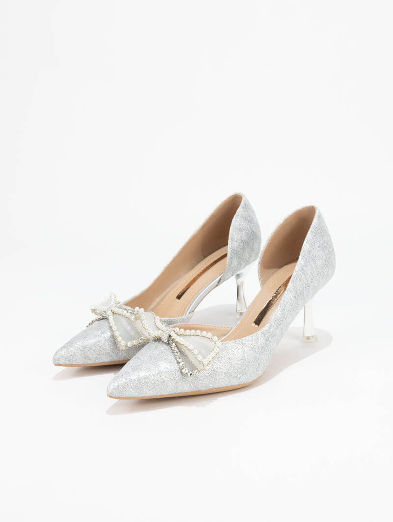 Succombez au charme de ces escarpins ornés d’un nœud en strass, qui illuminent vos pas et subliment vos tenues avec sophistication et féminité.