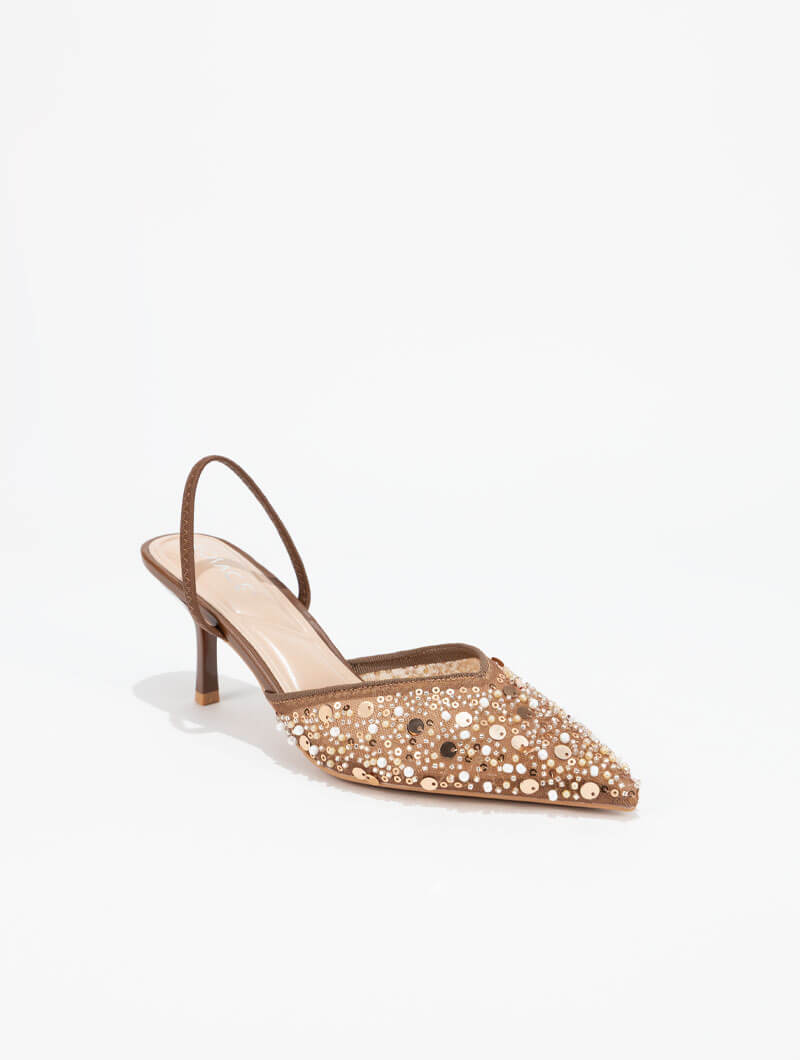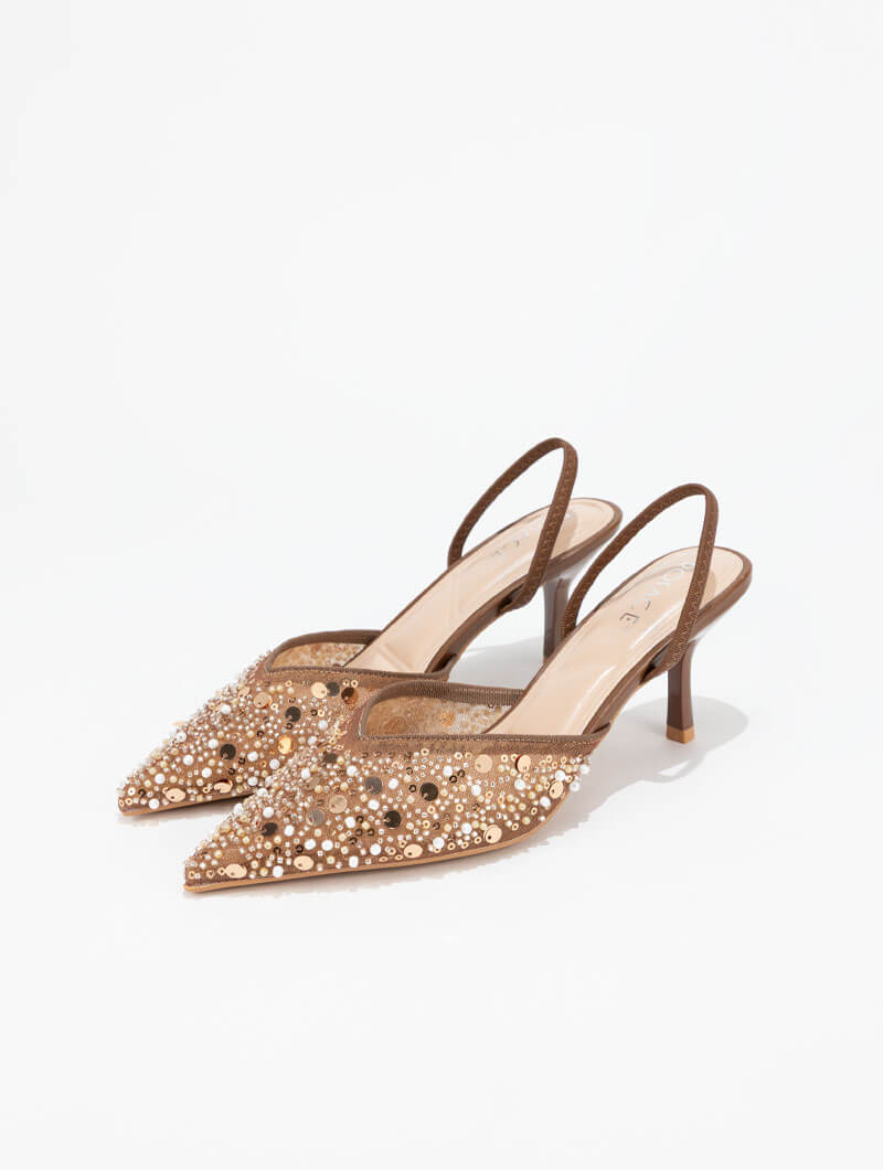 Faites scintiller vos tenues avec ces escarpins raffinés, délicatement ornés de sequins et strass. Alliant glamour et sophistication, ils ajoutent une touche lumineuse à vos soirées et événements spéciaux, tout en offrant confort et style à chaque pas.