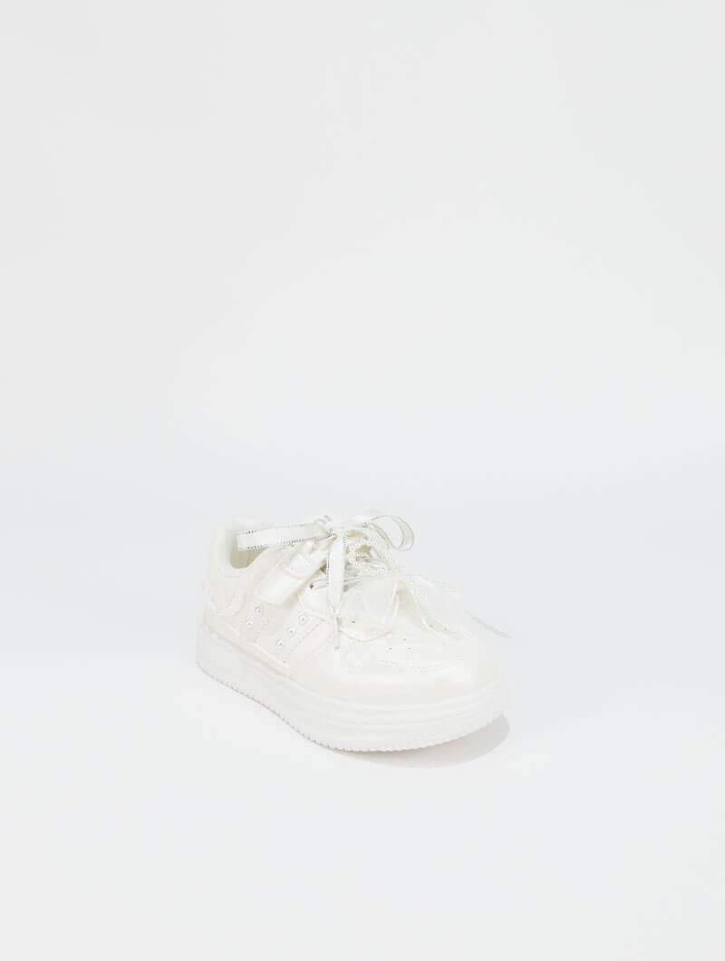Craquez pour ces baskets avec perles spécialement conçues pour enfant .Un mélange parfait entre confort et petite touche élégante pour sublimer leurs tenues du quotidien. Les détails perlés apportent une note chic tout en gardant un style moderne et adapté aux plus jeunes.