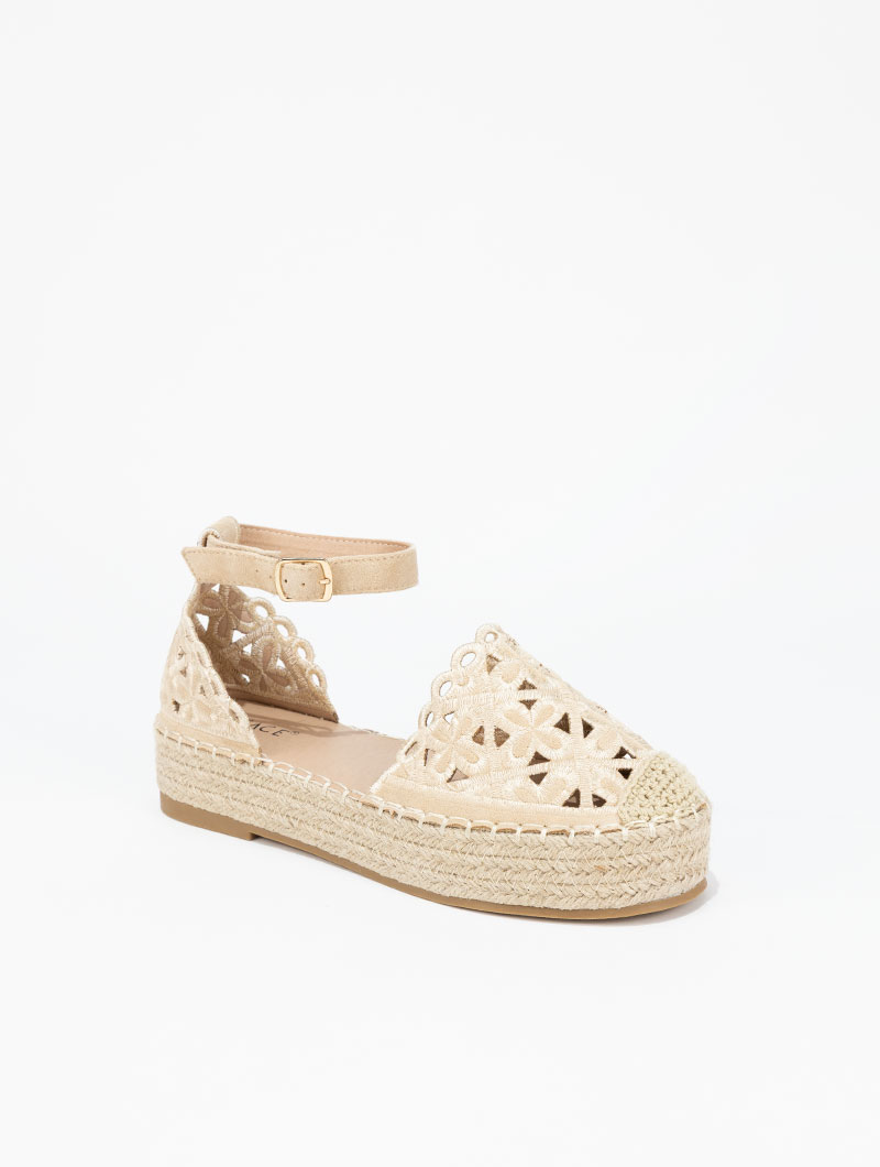 Adoptez l’élégance au quotidien avec ces mocassins compensés à semelle plateforme en corde tressée. Le choix parfait pour un style moderne et estival.