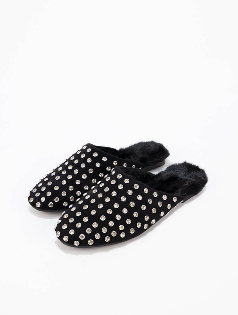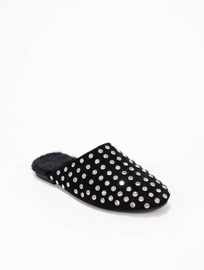 Ces mules plates à strass sont parfaites pour celles qui aiment allier confort et élégance. Leur texture douce et leur intérieur duveteux gardent les pieds au chaud, tandis que les strass apportent une note lumineuse et sophistiquée. Hauteur de la semelle: 1 CM