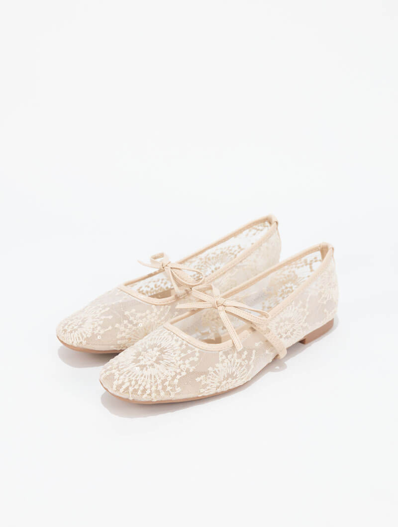Ballerines délicates au style élégant, ornées de broderies raffinées et d’un joli nœud décoratif. Leur design intemporel à bout rond apporte une touche de douceur et de féminité, idéal pour compléter les tenues du quotidien comme celles des occasions spéciales.
