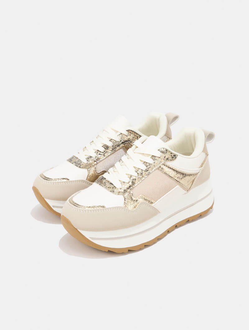 Apportez une touche d’élégance à vos tenues avec ces baskets au design raffiné . Avec leur semelle compensée et leur style tendance, elles allient confort et modernité pour toutes vos journées.