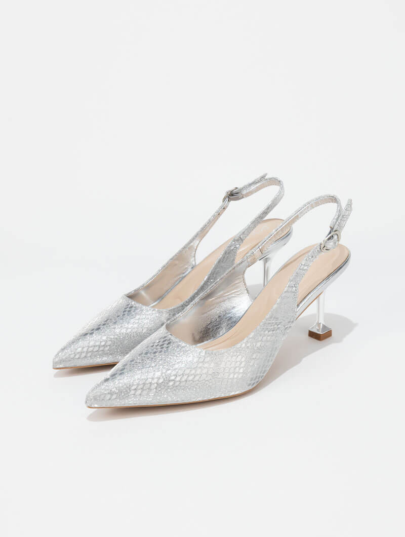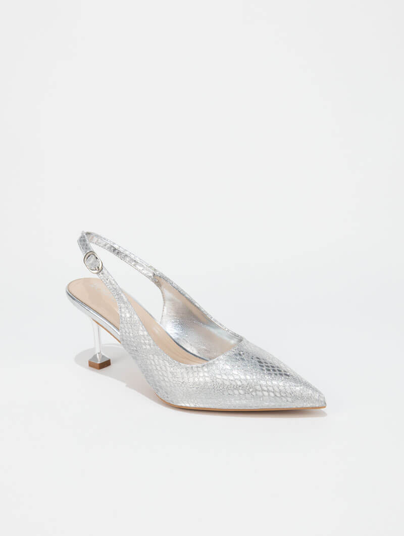 Adoptez un style chic et intemporel avec ces escarpins slingback au design élégant. Leur bout pointu sublime la silhouette, tandis que la bride arrière garantit un maintien optimal et un confort au quotidien.