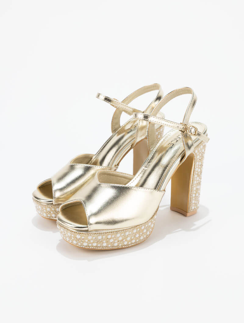 Modèle habillé à talons hauts, sublimé par des perles élégantes qui ajoutent une touche de brillance. Parfait pour illuminer vos soirées et compléter vos looks de fête avec style.