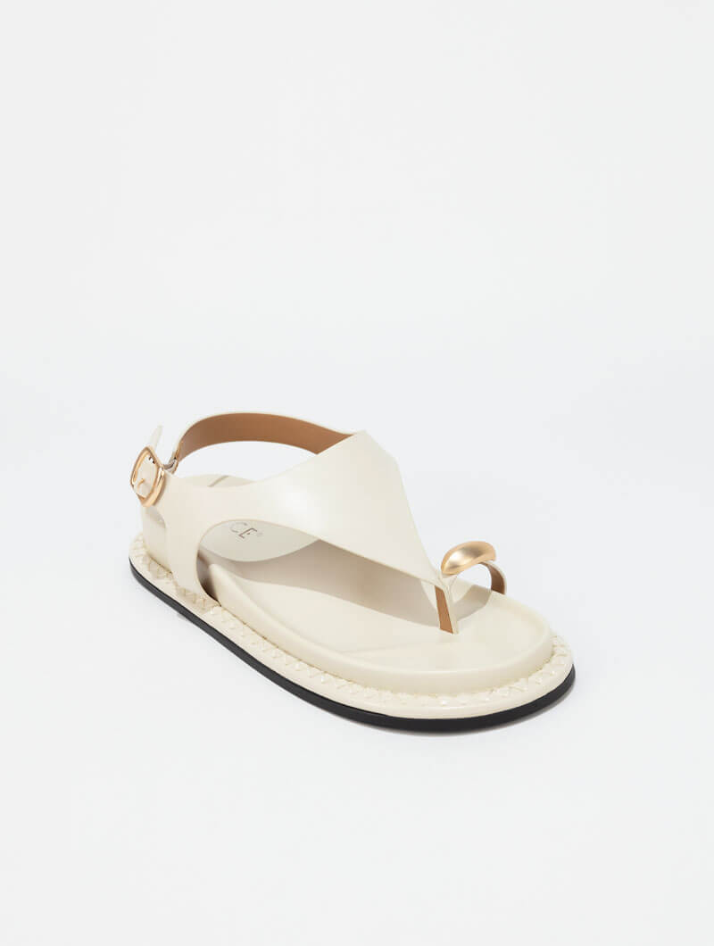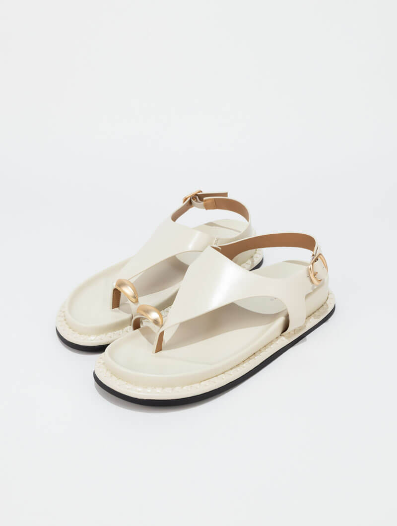 Sandales plates à détails, au design simple et tendance, idéales pour un look estival à la fois confortable et élégant. Leur style épuré apporte une touche moderne tout en restant facile à porter au quotidien. Hauteur de la semelle: 3 CM