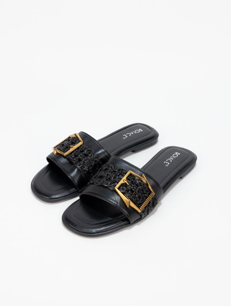 Mules à boucle au design élégant, idéales pour apporter une touche chic à vos tenues. Leur bride ornée d’une boucle ajoute du caractère tout en assurant un bon maintien. Confortables et faciles à enfiler, elles vous accompagnent avec style au quotidien.
