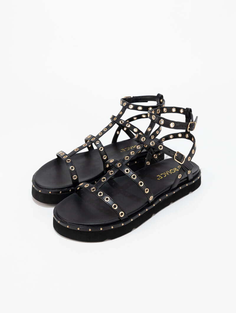 Sandales plateforme à clous, un modèle tendance au caractère affirmé. Dotées d’une semelle épaisse confortable, elles assurent un bon maintien tout au long de la journée.
