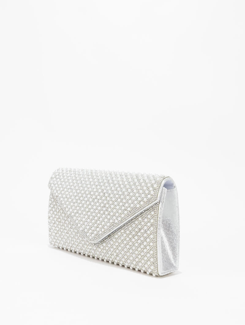 Pochette de soirée en perles, un accessoire élégant et raffiné qui illumine vos tenues de cérémonie. Entièrement orné de perles délicates, ce modèle apporte une touche de glamour et de sophistication.