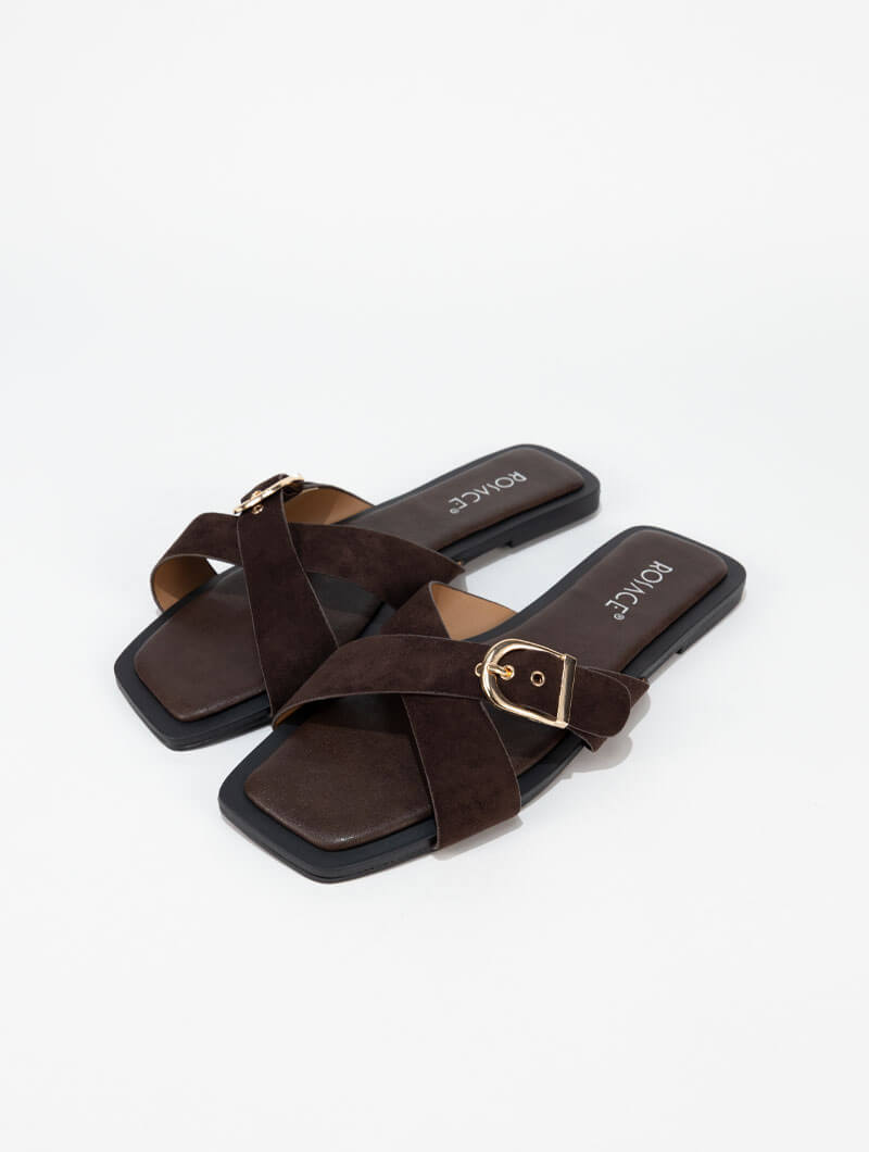 Mules à brides croisées au design élégant et féminin, parfaites pour apporter une touche raffinée à vos tenues estivales. Leurs brides croisées assurent un bon maintien du pied tout en offrant confort et légèreté à chaque pas. Idéales pour un look tendance au quotidien.