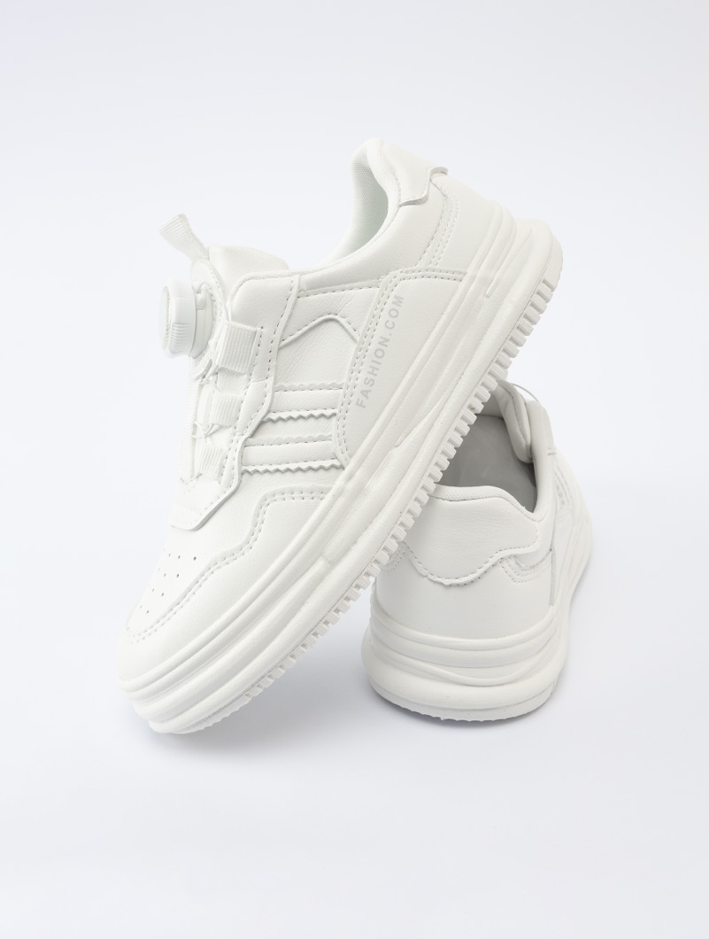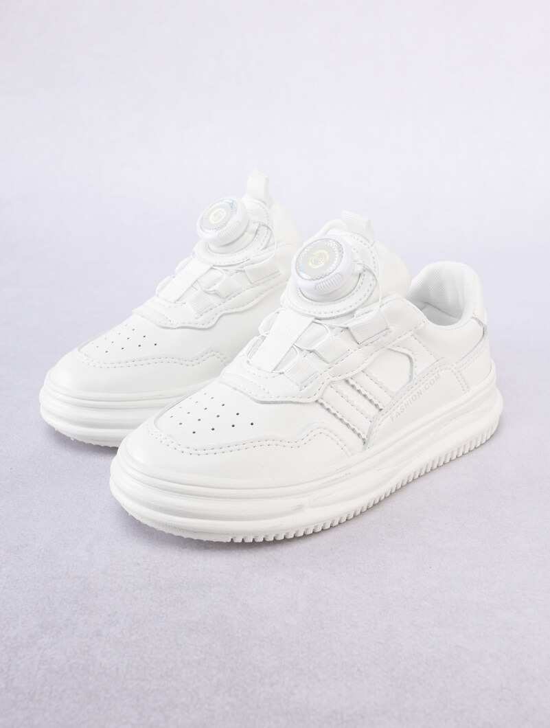 Enfilez ces baskets blanches pour vos garçons à bouton rotatif pour un confort optimal tout au long de la journée !