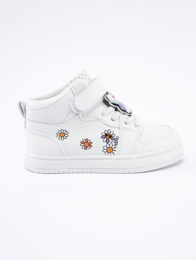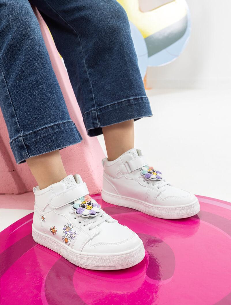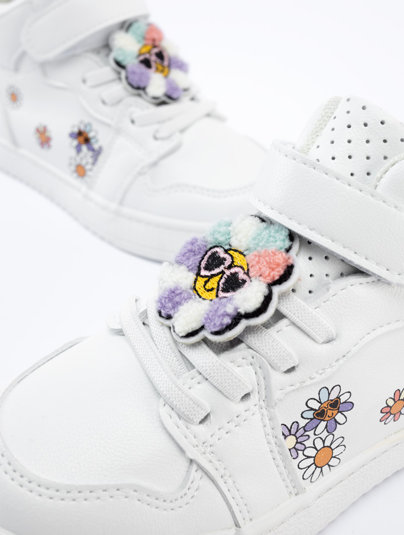 Baskets montantes avec design des fleurs et décorées avec des stickers sur les lacets, ces baskets misent sur un style actuel qui plaît aux filles, très rapides à enfiler grâce à leur fermeture à scratch.