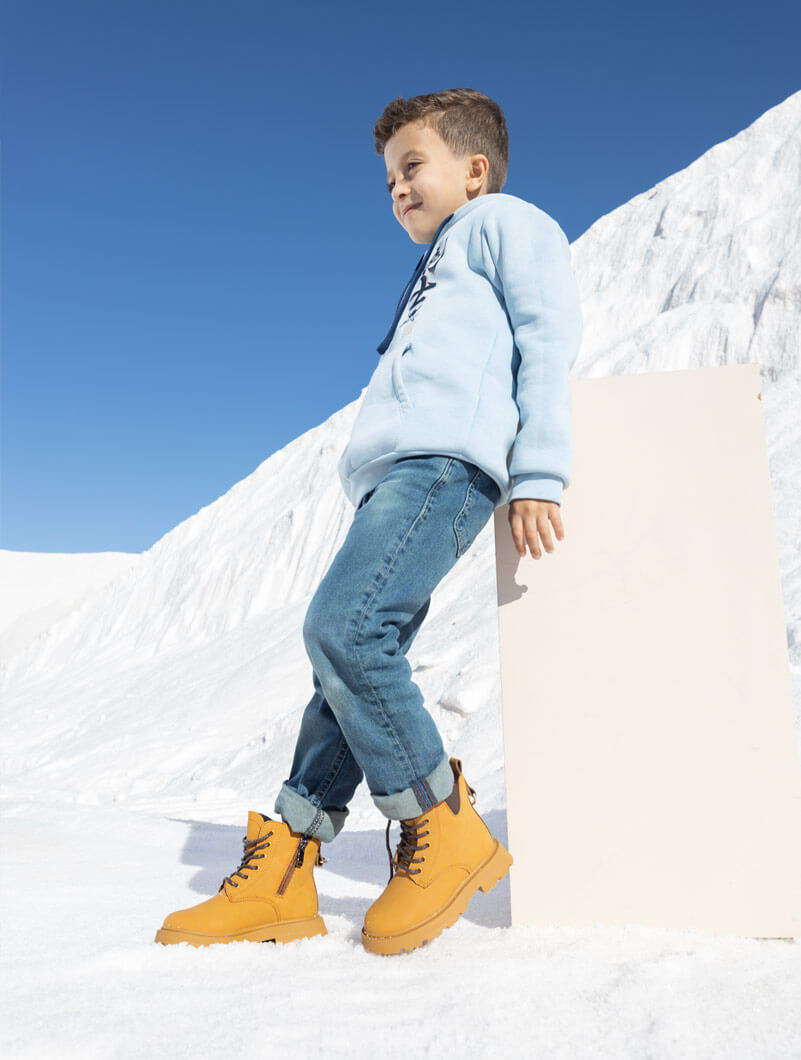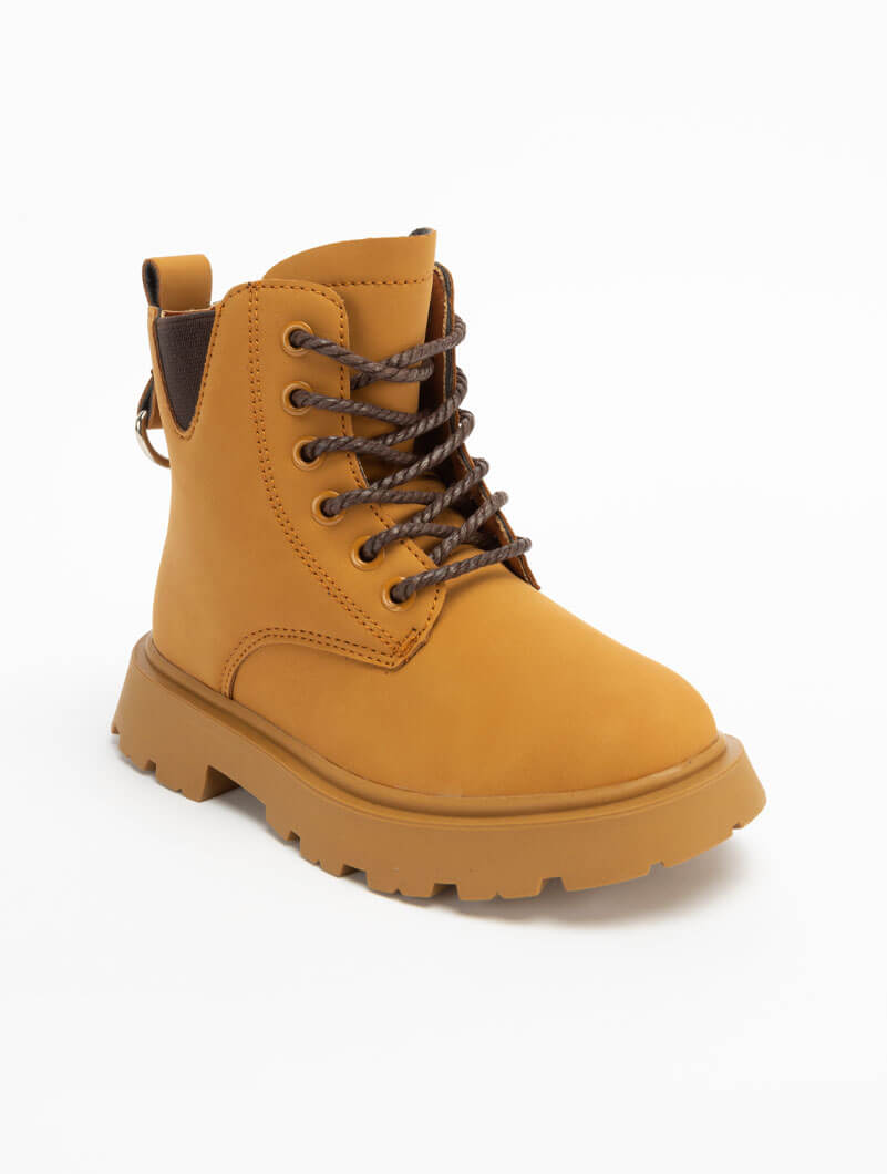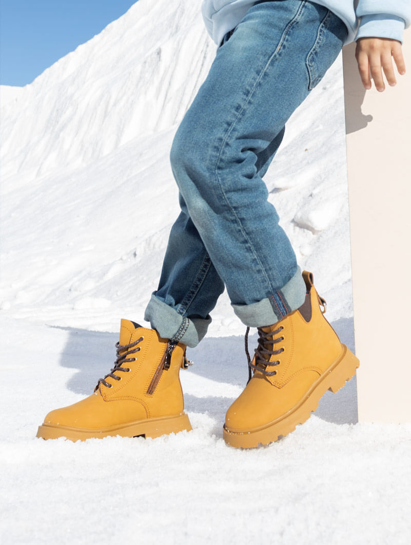Chaussez votre petit garçonnet avec une belle paire de bottes à lacets avec côtés élastiques et fermeture à l'intérieur, dotées d'une semelle crantée légère et souples en plus à la mode.