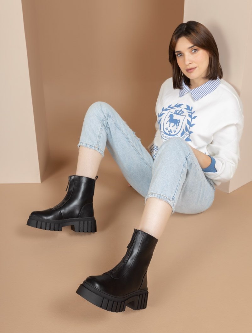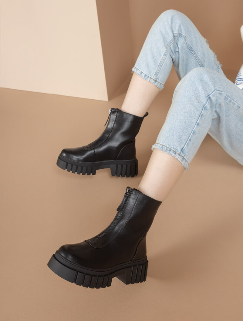 Bottine avec zipper et semelle crantée, son style original vous permettra d’ajouter une touche de peps à toutes vos tenues.