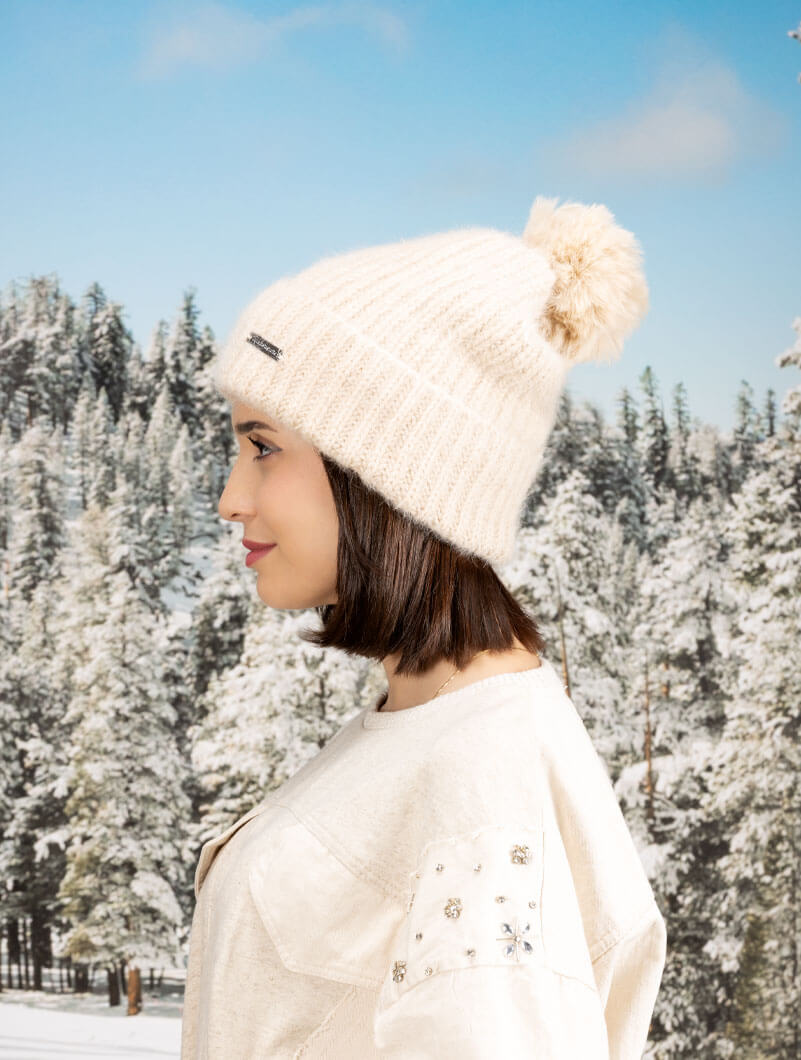 Bonnet pour femmesavec étiquette en métal est l'accessoire idéal pour compléter vos tenues d'hiver et pour garder votre tête et vos oreilles au chaud.