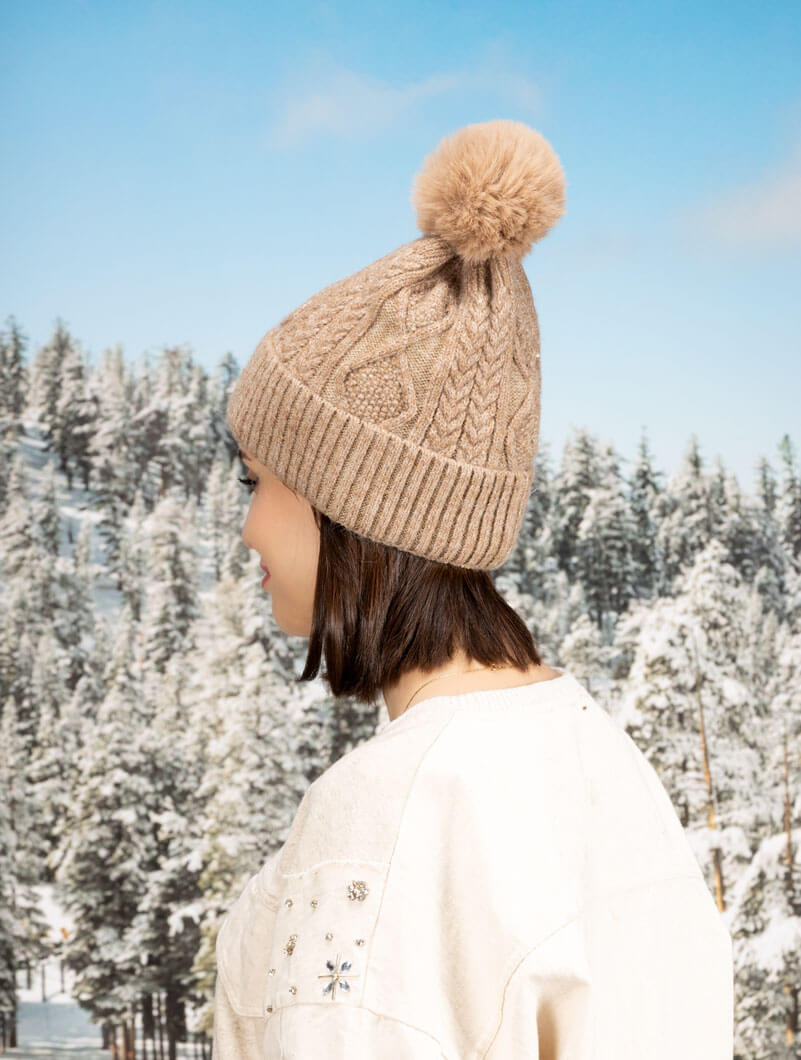 Gardez votre tête et vos oreilles au chaud tout l'hiver avec ce bonnet tricoté molletonné en polaire à l'intérieur et avec pompon.