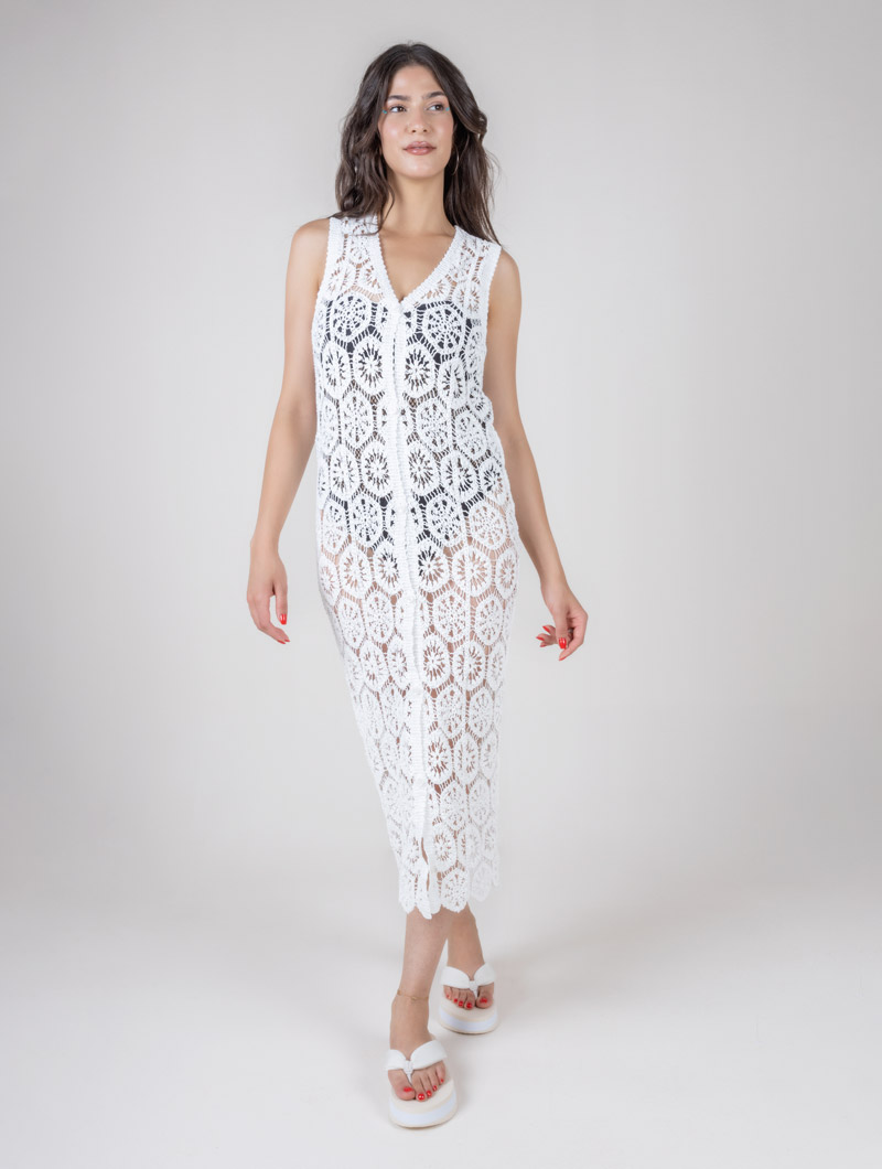 Transformez votre journée ensoleillée en un véritable instant de style avec ce cache maillot long, rehaussé de boutons. Ses détails élégants ajoutent une touche de glamour à votre look de plage.