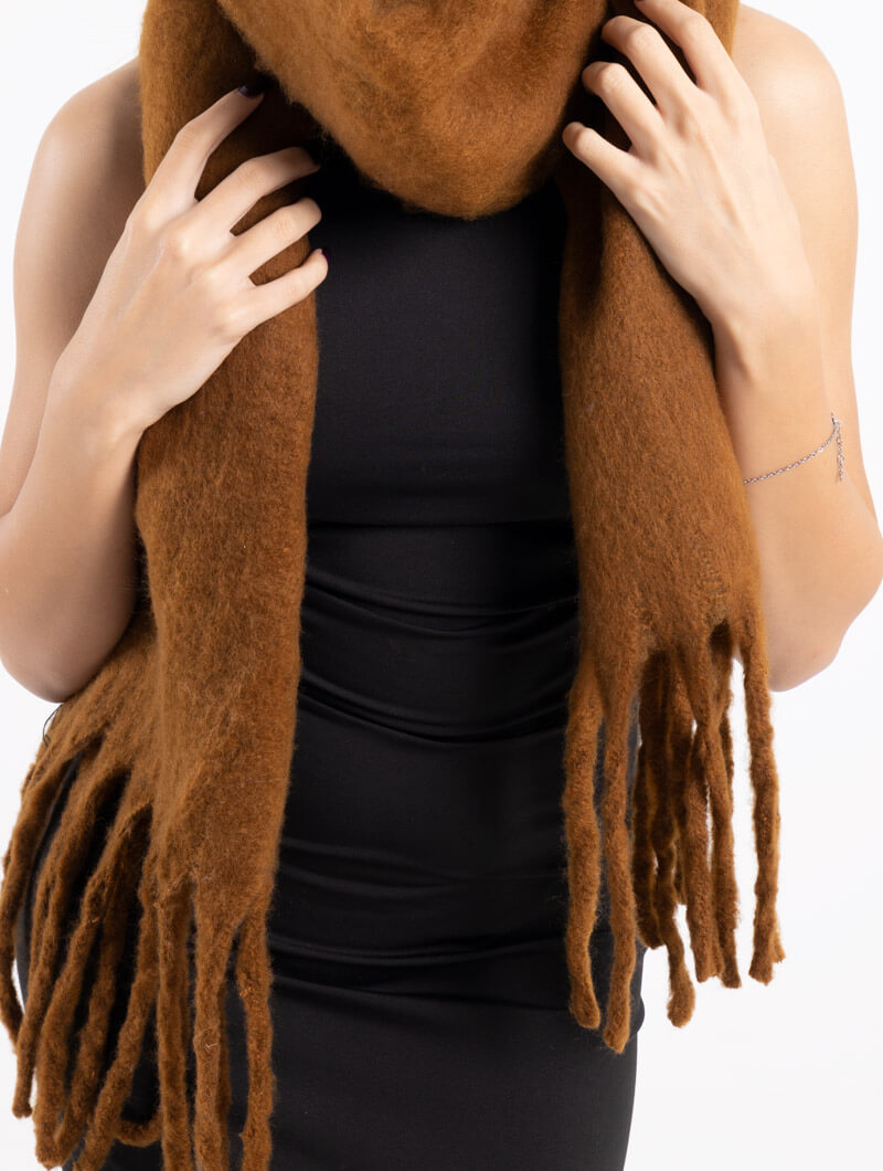 Laissez-vous envelopper par cette écharpe en laine, un véritable nid de douceur. L’alliée parfaite pour braver le froid avec style et confort.