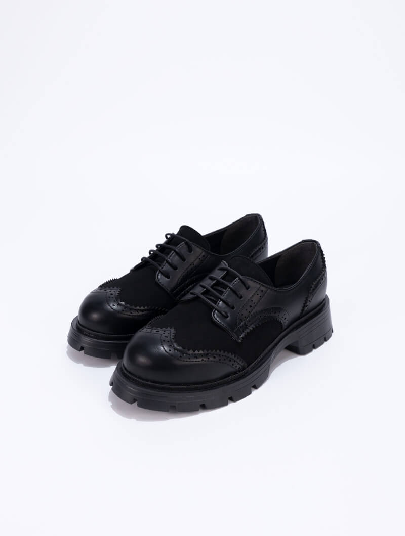 Ces derbies à lacets offrent une allure intemporelle et sophistiquée. Parfaites pour un look formel ou décontracté chic, elles allient confort et style avec leur semelle souple et leur design raffiné.