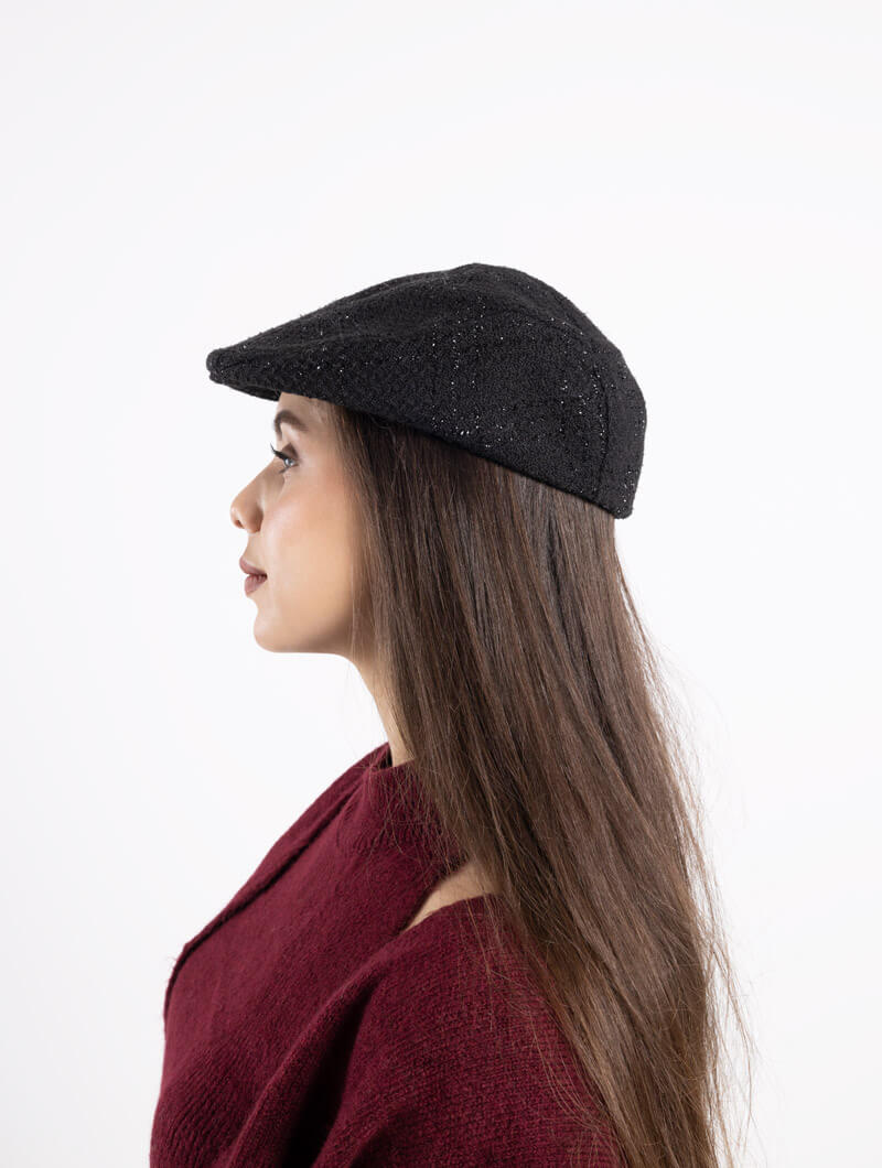 Apportez une touche d'élégance vintage à votre tenue avec cette casquette plate en tweed, spécialement conçue pour les femmes. Son motif chevrons intemporel et sa finition en laine offrent style et confort, parfaits pour un look chic au quotidien ou en sortie.