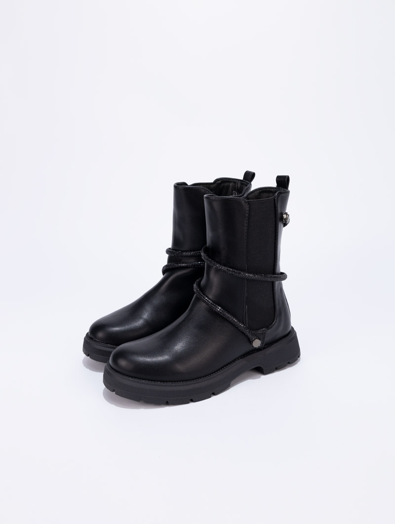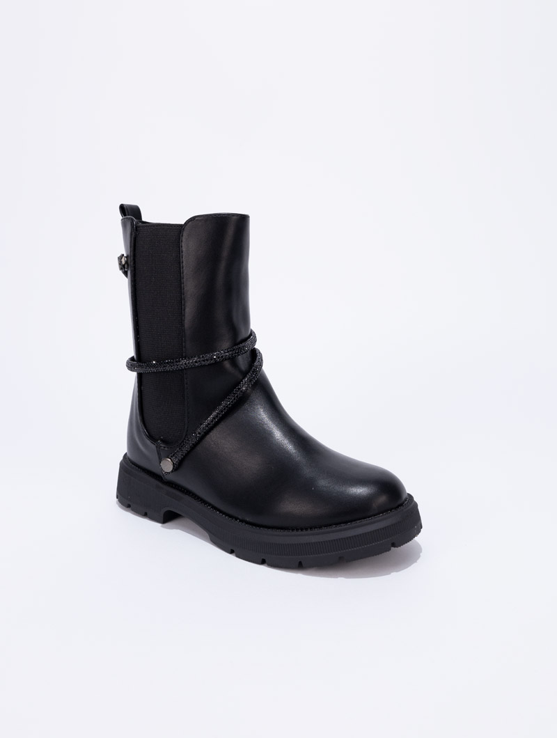 Ajoutez une touche d'élégance au look de votre petite fille avec ces bottines tendance. Dotées d'un élastique pratique pour un enfilage facile, elles se distinguent par une bande ornée de strass qui entoure délicatement la chaussure, offrant un éclat raffiné.
