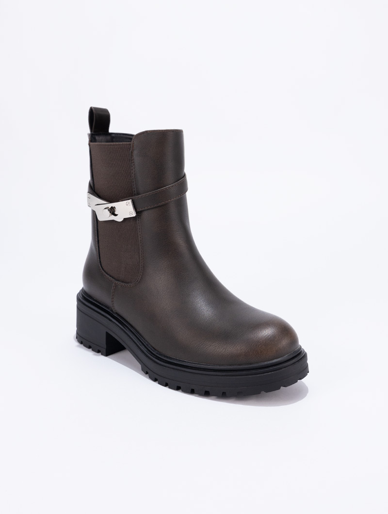 Apportez une touche d'élégance subtile à votre style avec nos bottines décorées de boucles. Leur design raffiné et contemporain insuffle une note chic et sophistiquée à chacune de vos tenues, pour un look à la fois intemporel et moderne.