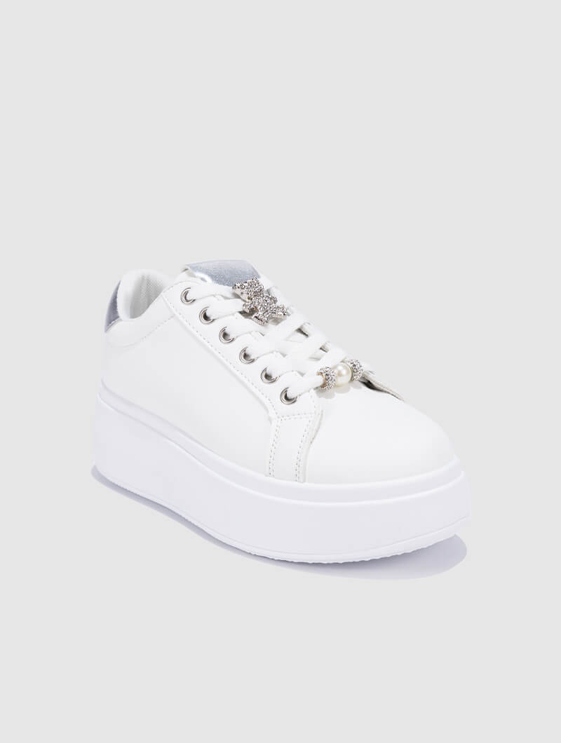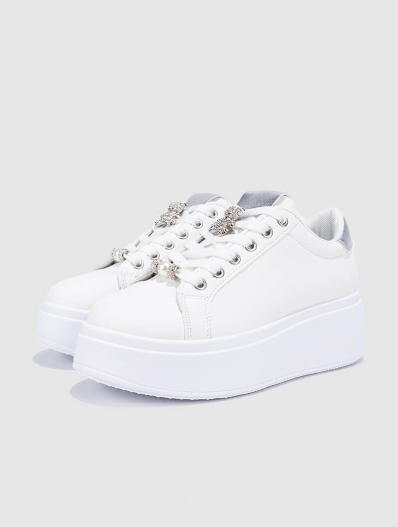 Ajoutez une touche d'éclat à votre style avec ces baskets à lacets ornées d’accessoires en strass. Un mélange parfait entre confort et glamour, elles sublimeront vos looks décontractés comme vos tenues plus sophistiquées.
