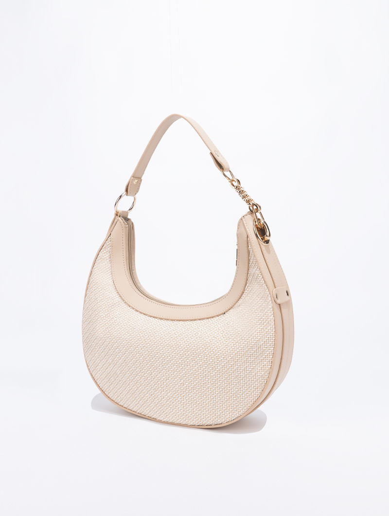 Alliez élégance et naturel avec ce sac hobo en raphia tressé et détails en simili cuir. Son design arrondi et sa bandoulière confortable en font un accessoire tendance et pratique, idéal pour sublimer vos tenues estivales.