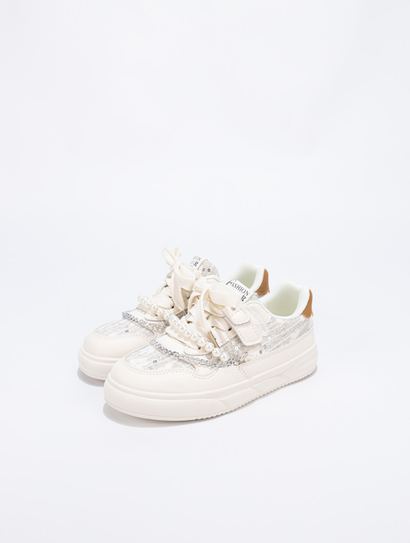 Ces baskets pour fillette ajoutent une touche de brillance avec leur chaîne dorée. Confortables et stylées, elles sont parfaites pour toutes les petites fashionistas.