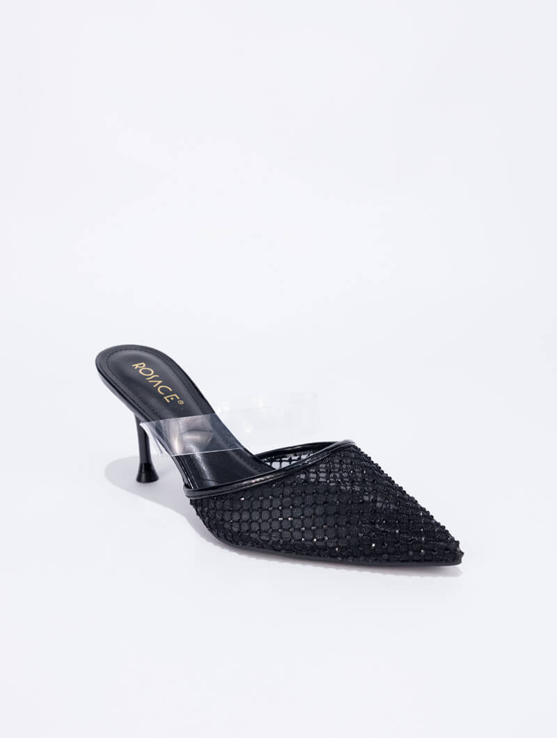 Sublimez votre allure avec ces sabots à bout pointu ornés de strass scintillants. Leur design raffiné et leur touche glamour en font la pièce maîtresse de votre dressing. Confort et style se rencontrent pour illuminer toutes vos tenues.