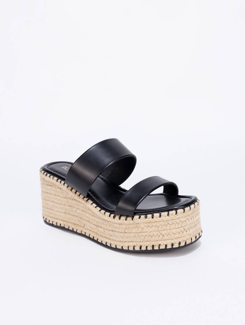 Ces sabots compensés à double bride marient parfaitement style et stabilité. Grâce à leur semelle compensée, ils allongent la silhouette tout en offrant un confort inégalé. Les deux brides larges assurent un maintien impeccable tout en dessinant un joli pied.