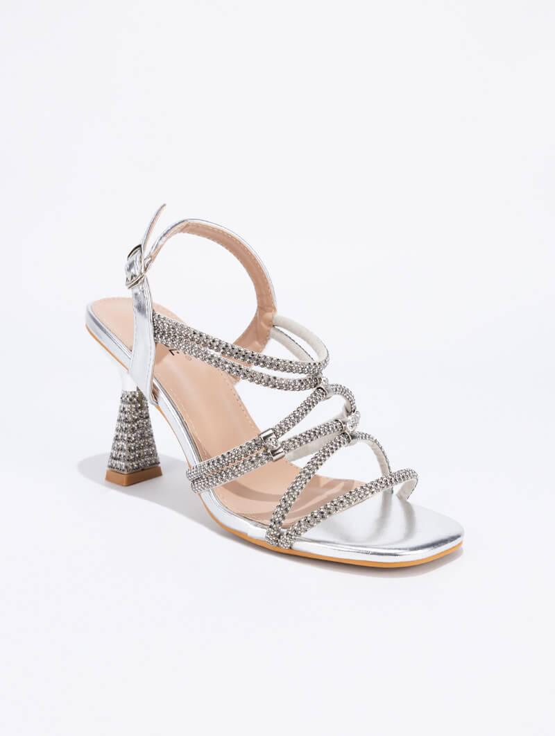 Ornées de détails scintillants et montées sur un talon fin, ces sandales de soirée incarnent l’élégance à l’état pur. Leur silhouette sophistiquée allonge la jambe et magnifie chaque pas.