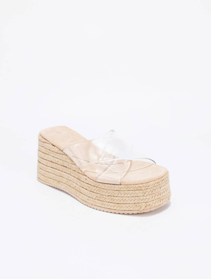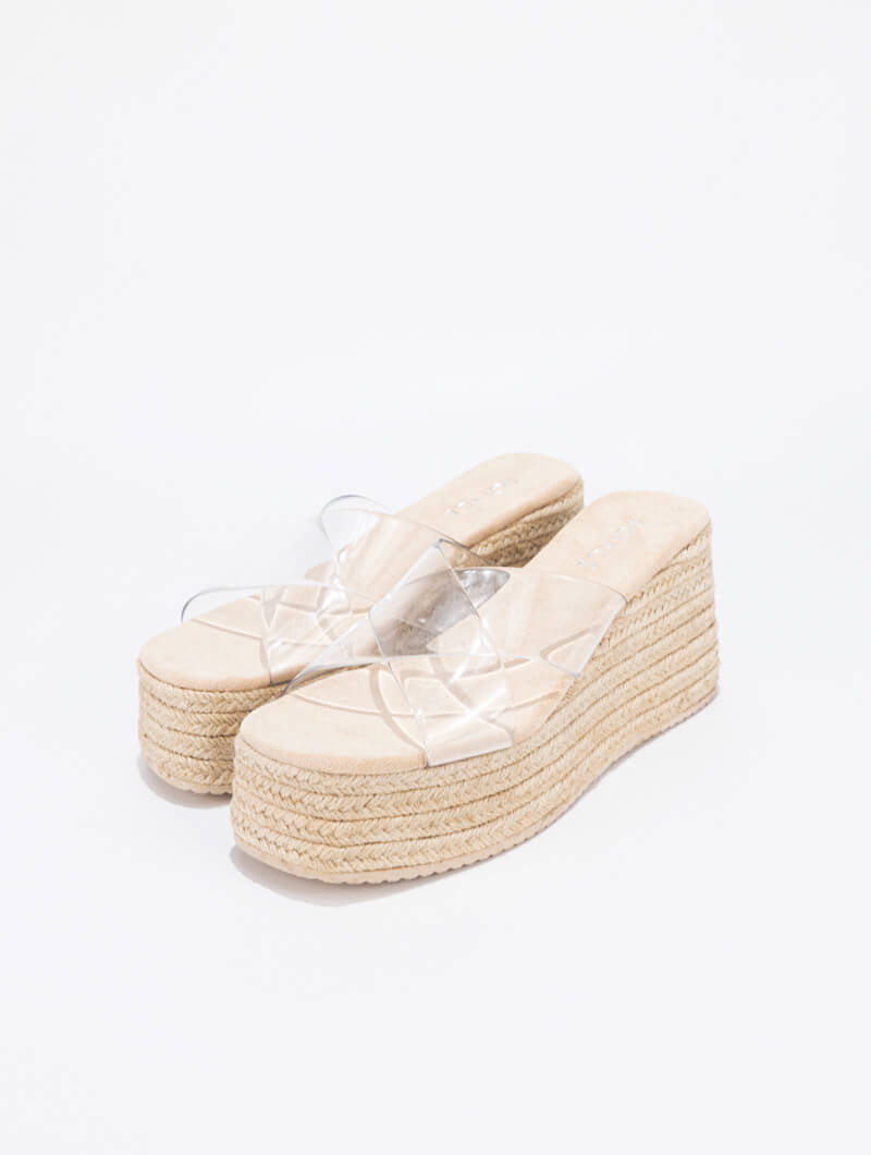 Ces sabots transparents croisées créent un effet aérien tout en sublimant le pied. Un incontournable pour compléter vos looks d'été.