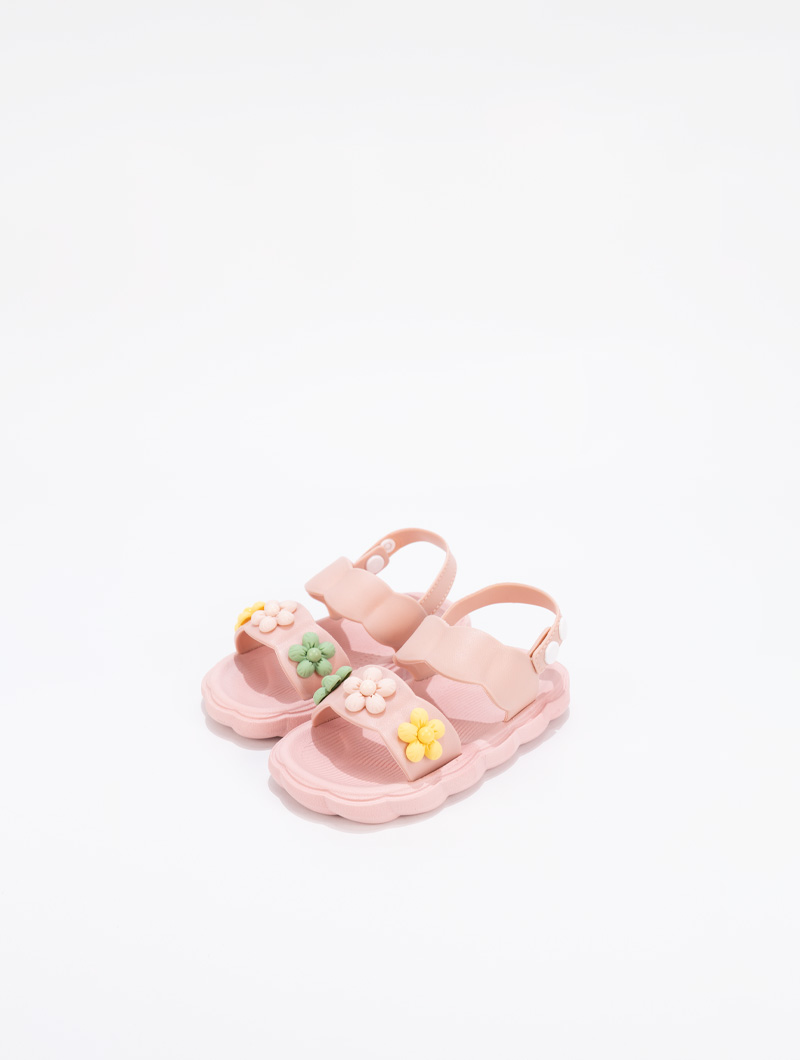 Sandales roses adorables avec fleurs colorées en relief. Semelle épaisse et fermeture pratique. Parfaites pour un été plein de style et de confort !