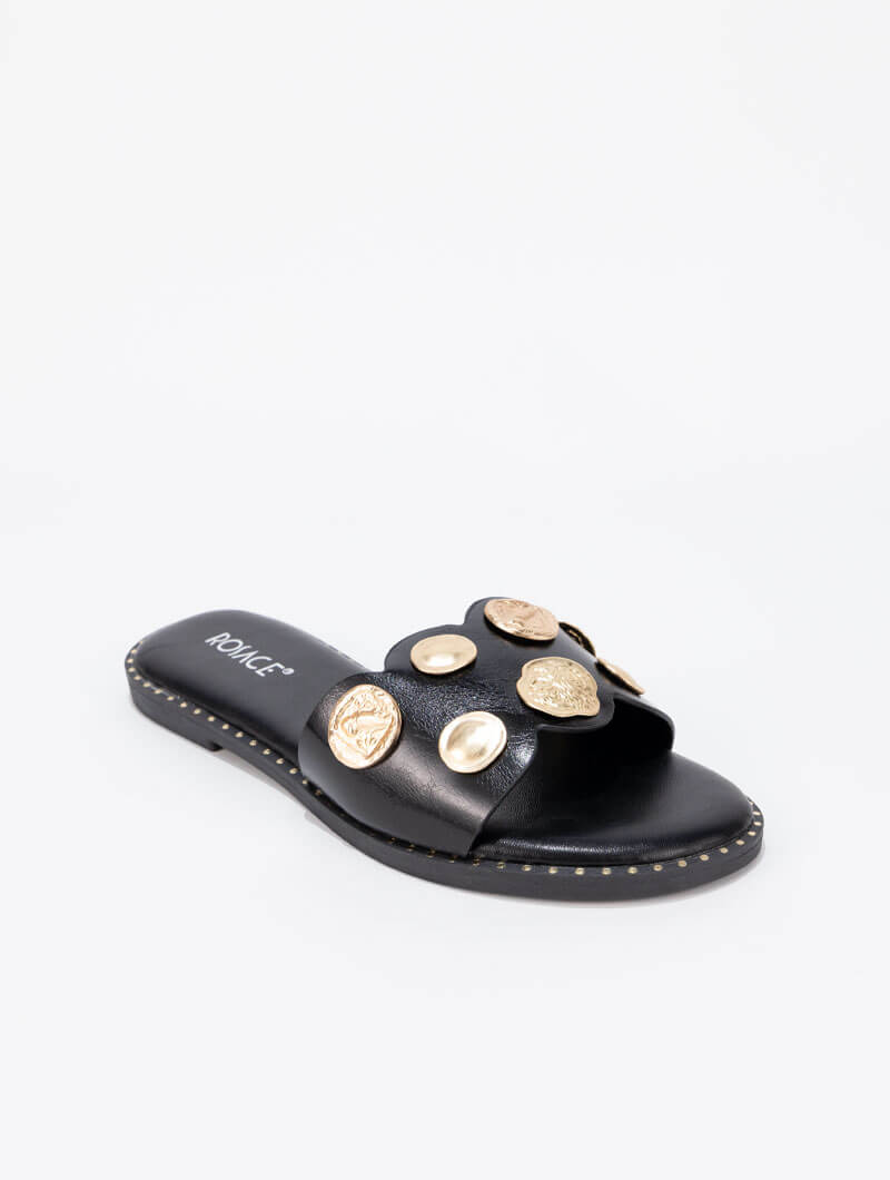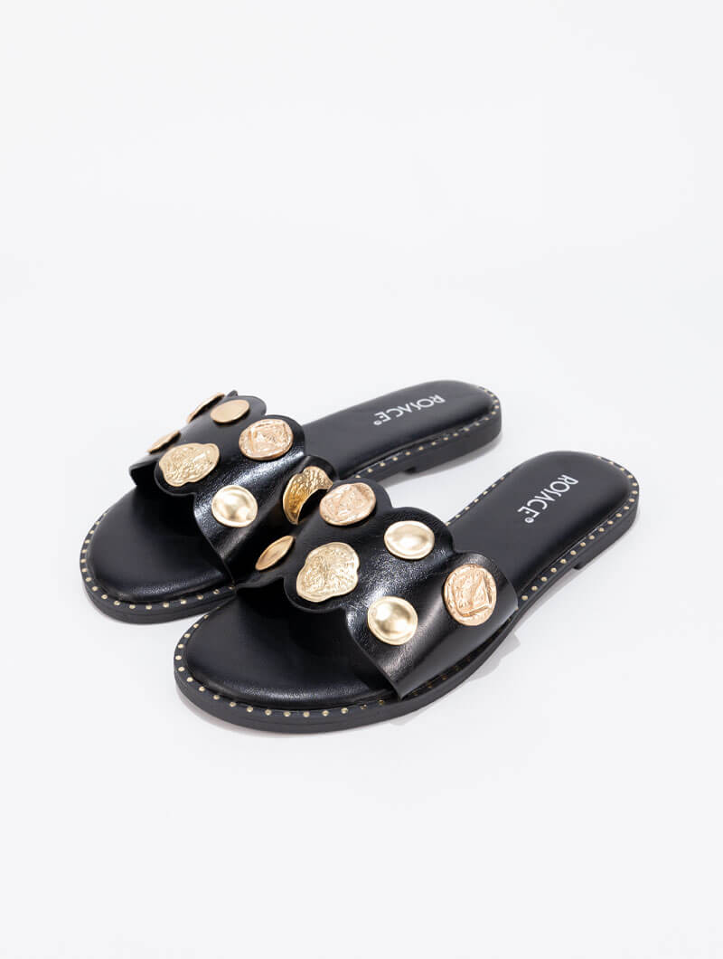 Ces mules palets avec détail doré subliment toutes vos tenues. Faciles à enfiler, elles allient confort et élégance avec leur silhouette épurée, rehaussée par une touche dorée délicate sur le dessus. Idéales pour une allure chic en toute simplicité.