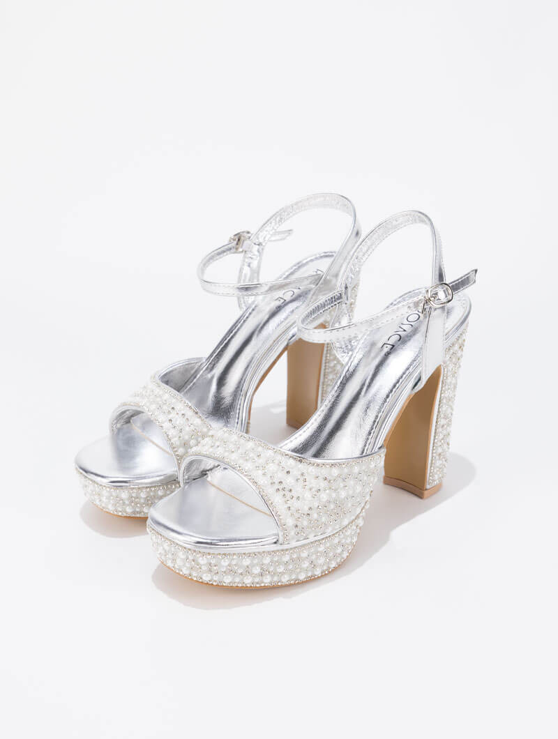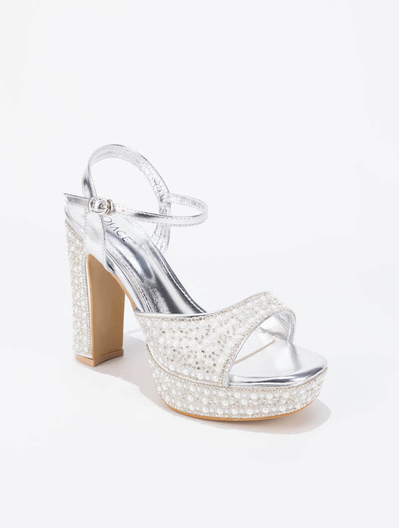 Modèle habillé à talons hauts, sublimé par des perles élégantes qui ajoutent une touche de brillance. Parfait pour illuminer vos soirées et compléter vos looks de fête avec style.
