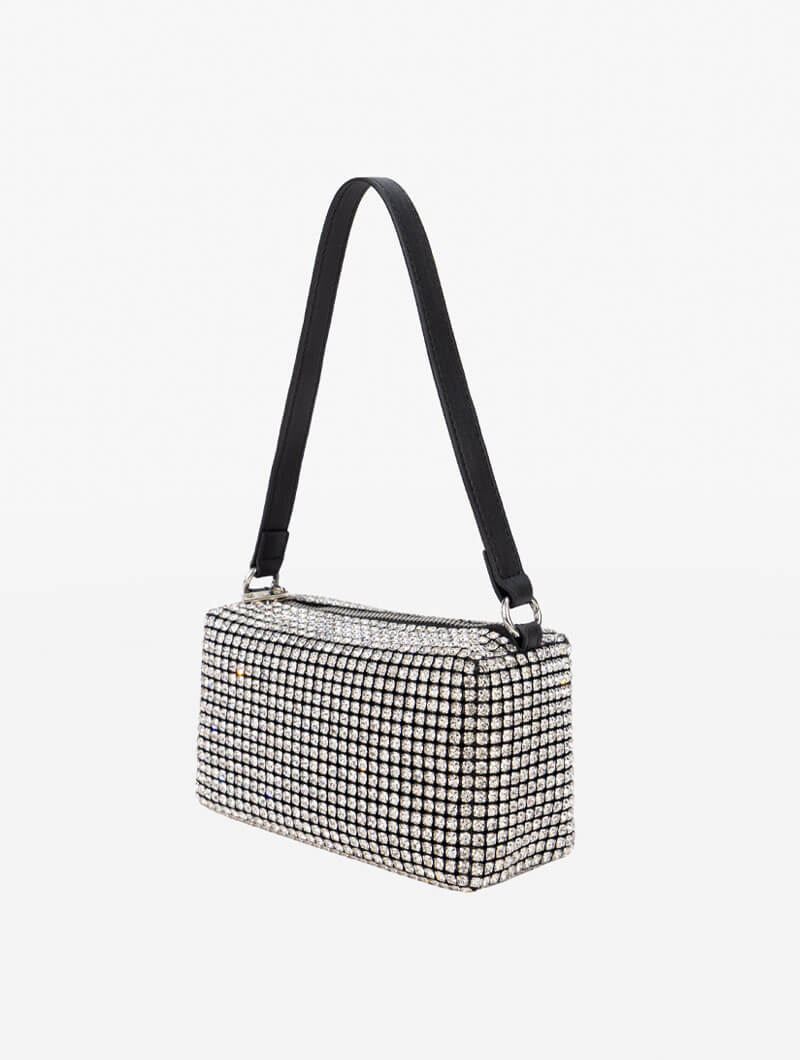 Un sac de soirée chic et raffiné, paré de strass étincelants qui captent la lumière à chaque mouvement. Idéal pour compléter vos tenues de soirée avec glamour.