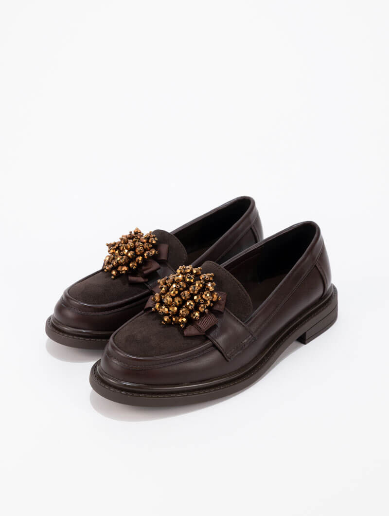 Ces derbies raffinés se distinguent par une boucle élégante ornée de cristaux scintillants. Parfaites pour ajouter une touche de glamour à vos tenues classiques. Hauteur de la semelle: 3 CM