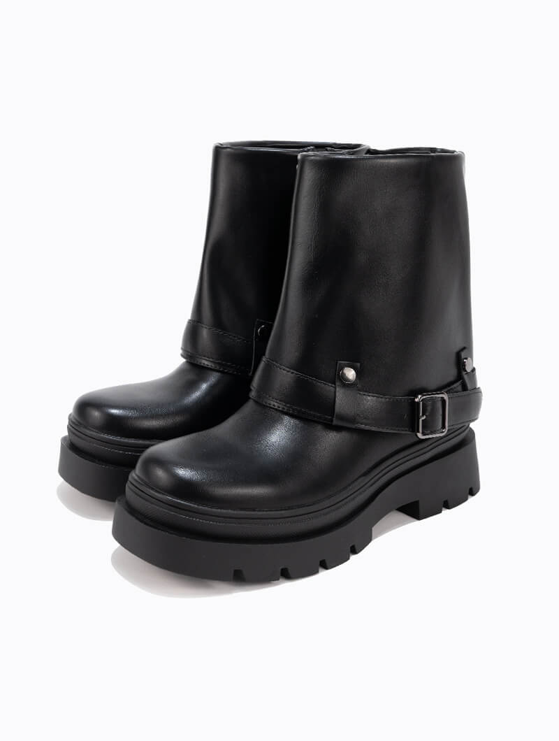 Bottines tendance à plateforme avec revers et boucle décorative. Leur semelle épaisse crantée apporte une touche audacieuse à toutes vos tenues, pour un look moderne et affirmé.
