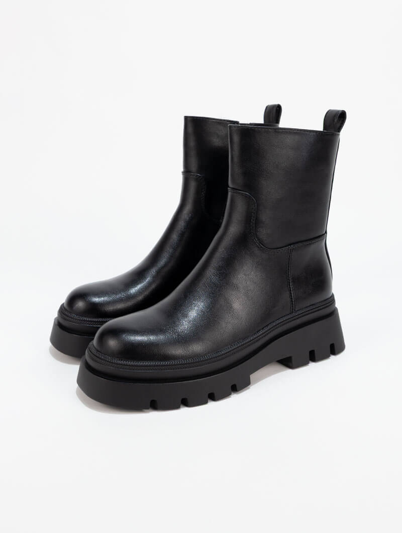 Ces bottines à plateforme apportent une touche moderne et audacieuse à vos tenues. Leur silhouette élancée allonge la ligne et offre un style affirmé au quotidien. Un modèle tendance qui rehausse instantanément n’importe quel look.